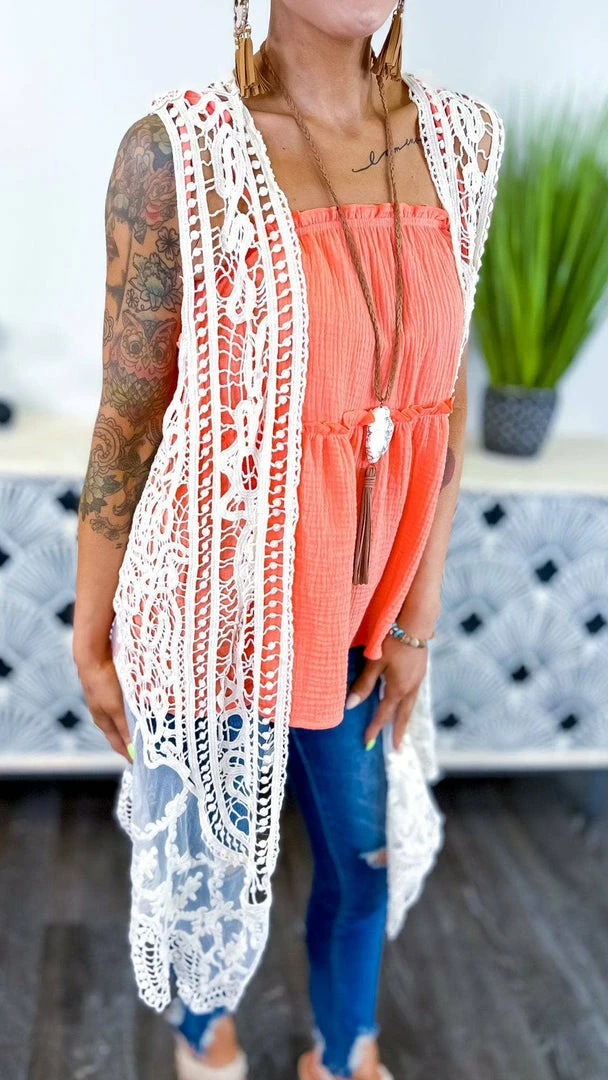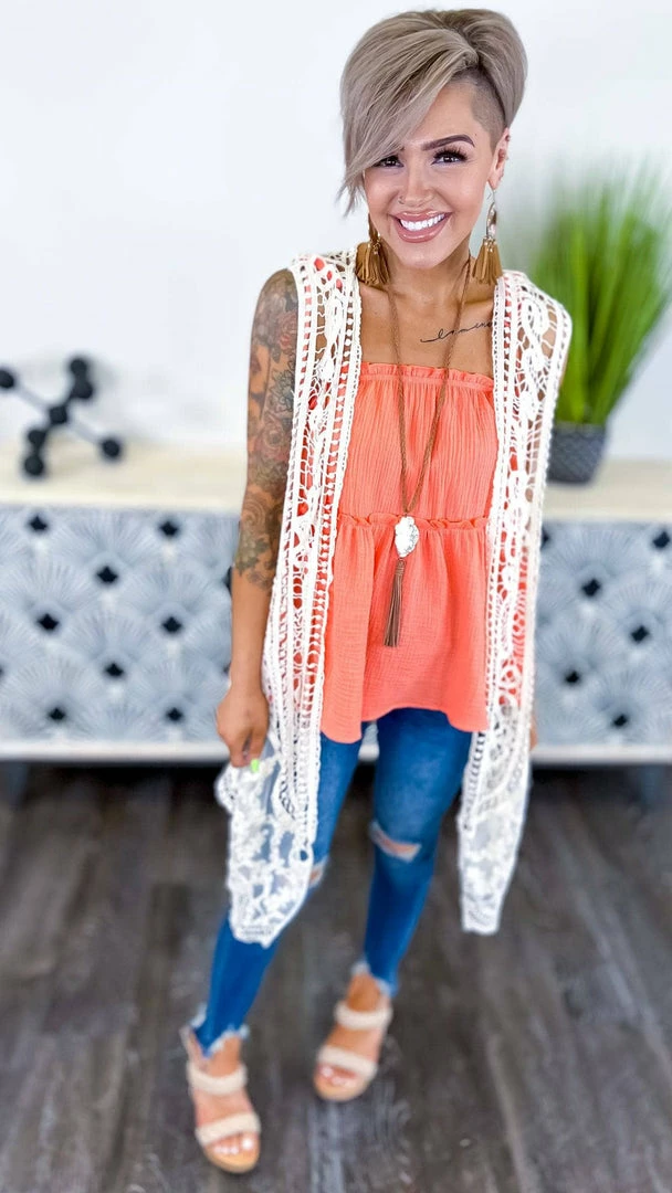 Measurement: 19″ Shoulder to hem (Adjustable tie straps)