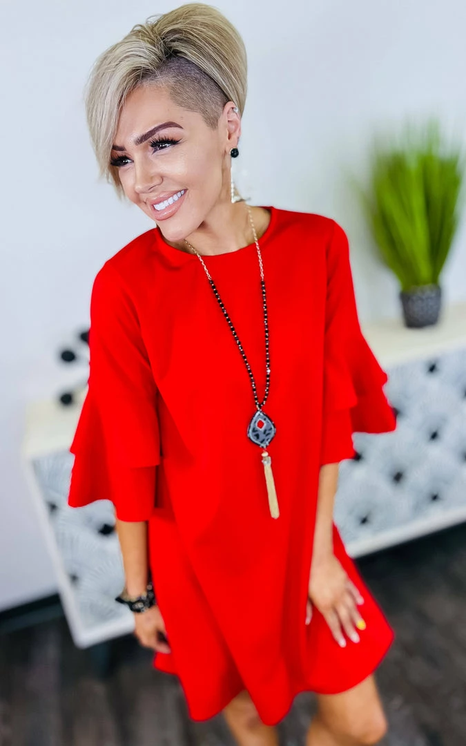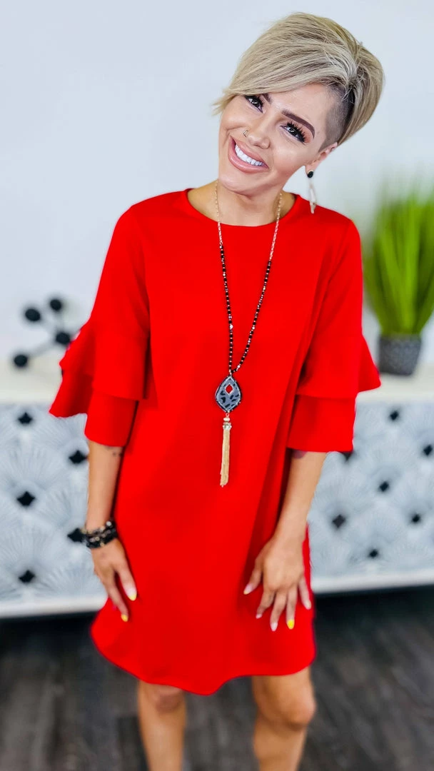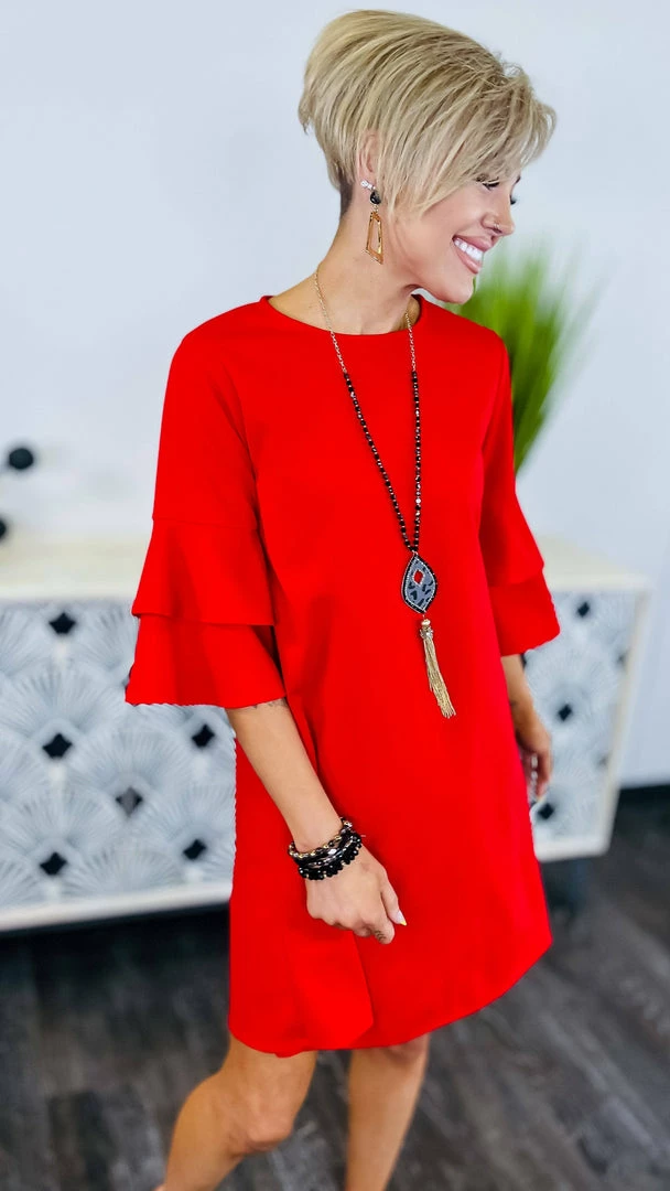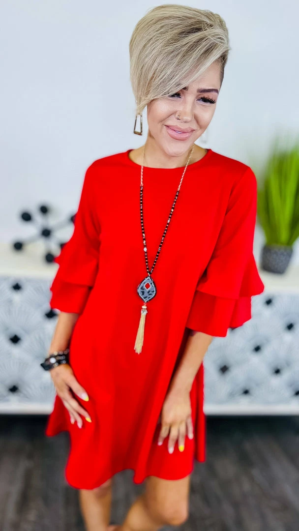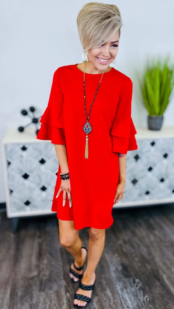 This classic design will sure be a favorite!Β This dress has the perfect length and those sleeves are too cute!