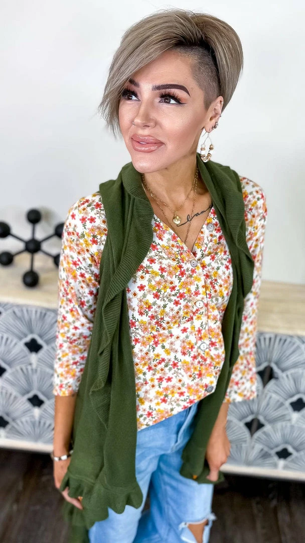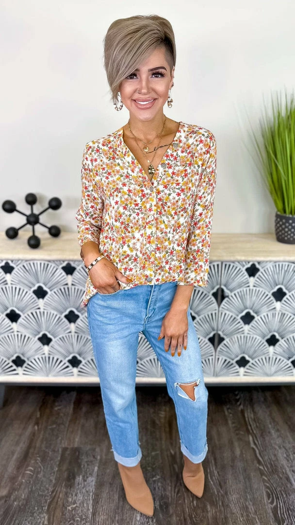 Add some flower power to your ZZS collection! With pretty 3/4 sleeves and a button-up v-neck, this top is perfect for a day of exploring a new city or strolling through your favorite park. The floral print is cheerful and optimistic, sure to bring a smile to everyone you meet.