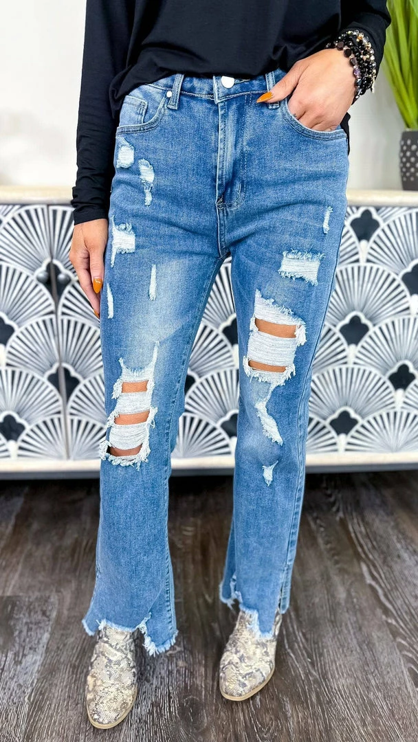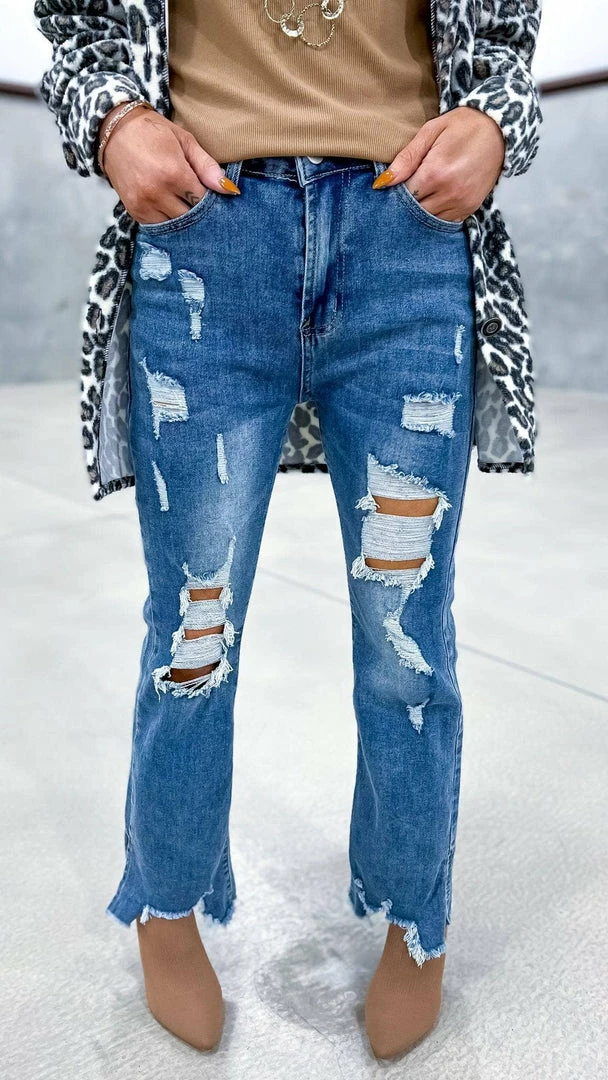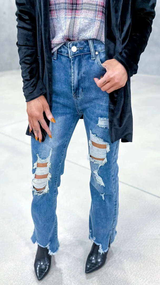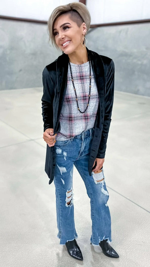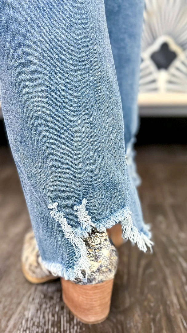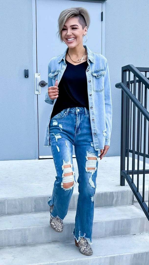 So, we did a little thing … weΒ designed [ made by us for you ] jeans!Β We know that shopping for denim is really hard so we’ve brought to youΒ a new go-to denim brand.Β The “GP1010” distressed raw hem ankle flareΒ jeans are a new style in our denim collection, withΒ a high-rise waistline, distressing throughout the legΒ and hem,Β and a perfect fit. Stretch is not a problem when it comes to this denim. You’ll love everything about these.