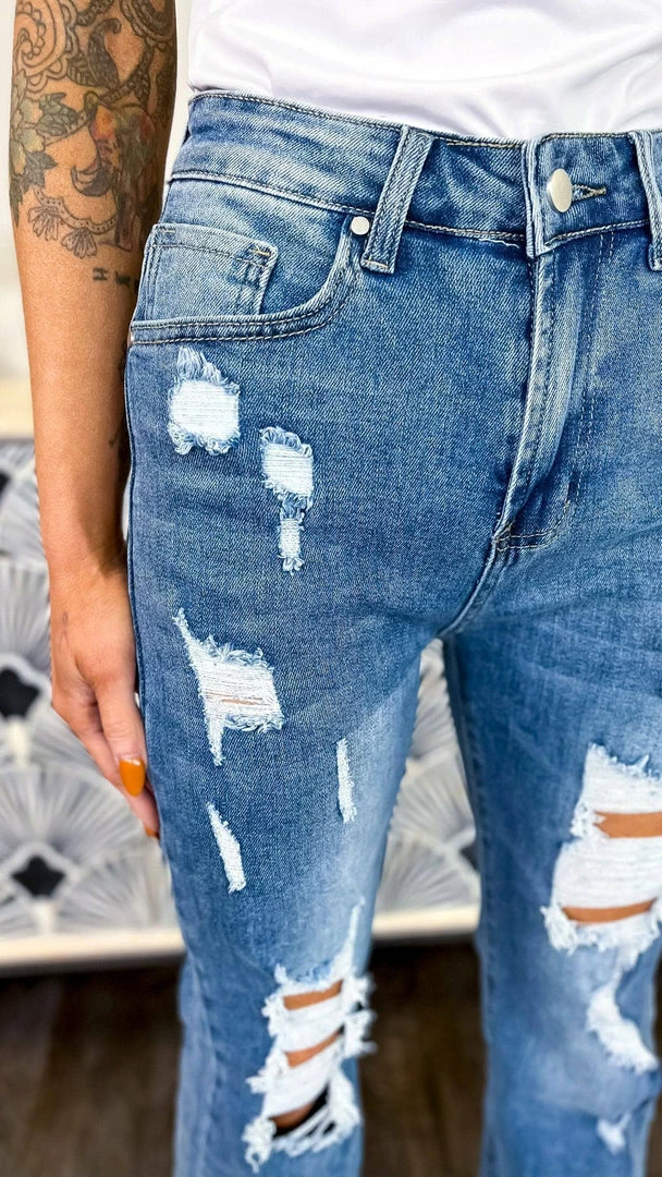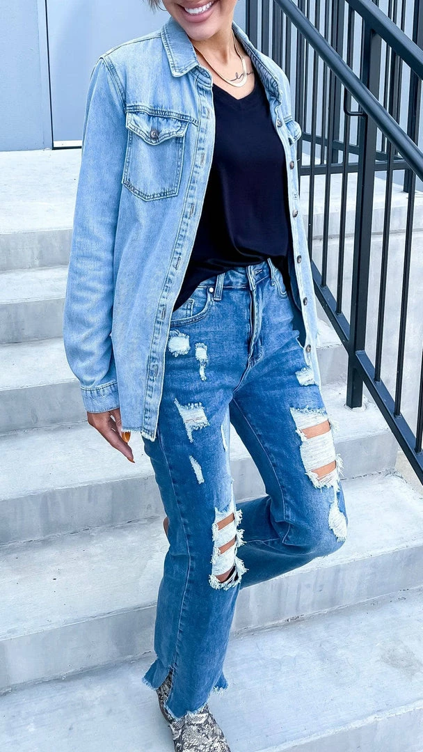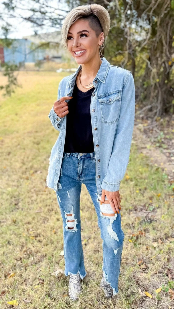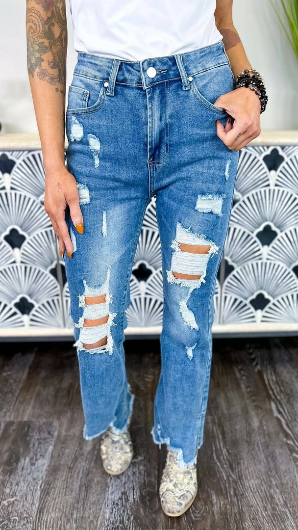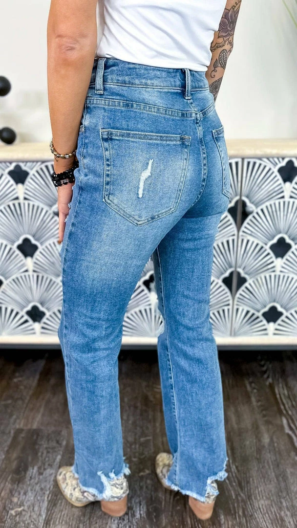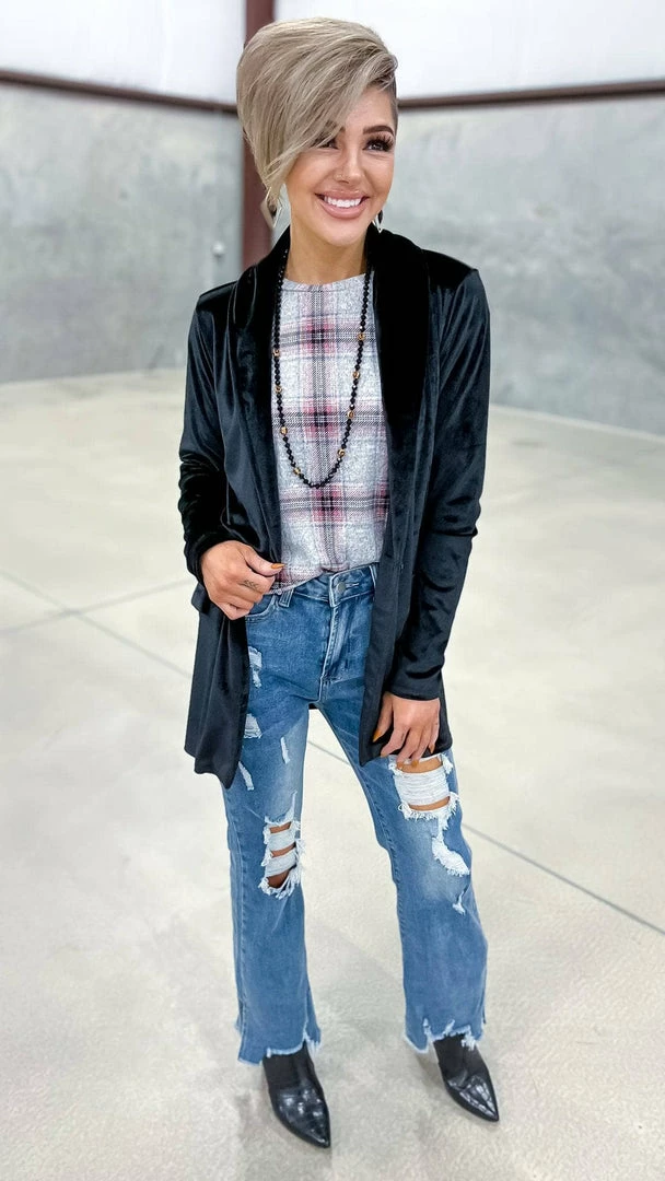 So, we did a little thing … weΒ designed [ made by us for you ] jeans!Β We know that shopping for denim is really hard so we’ve brought to youΒ a new go-to denim brand.Β The “GP1010” distressed raw hem ankle flareΒ jeans are a new style in our denim collection, withΒ a high-rise waistline, distressing throughout the legΒ and hem,Β and a perfect fit. Stretch is not a problem when it comes to this denim. You’ll love everything about these.