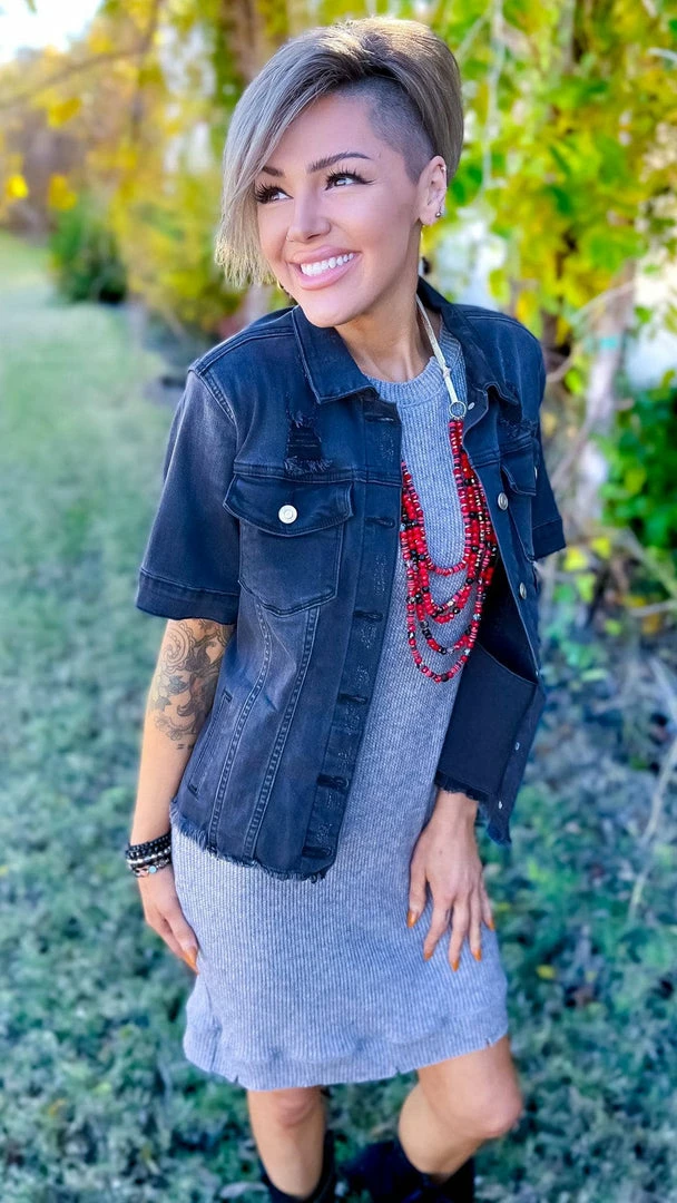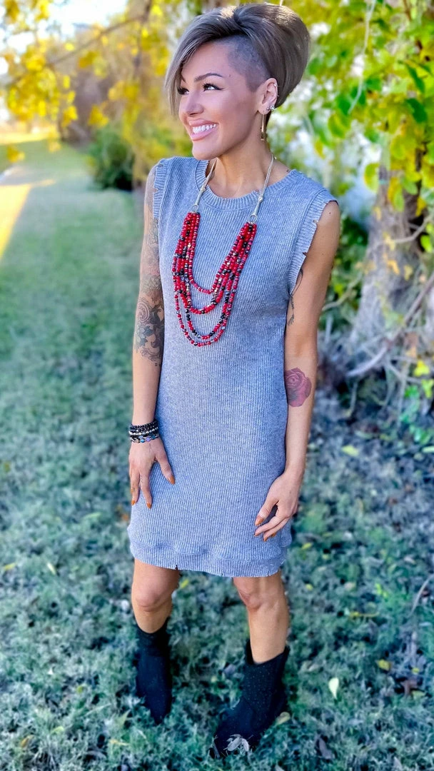 This is the next dress you’ll want to live in. Cozy up in this adorable sweater dress designed by The ZigZag Stripe. The distressed armholes and hemline add unique detailing. Dress it up or down, this versatile dress is sure to become a new favorite.