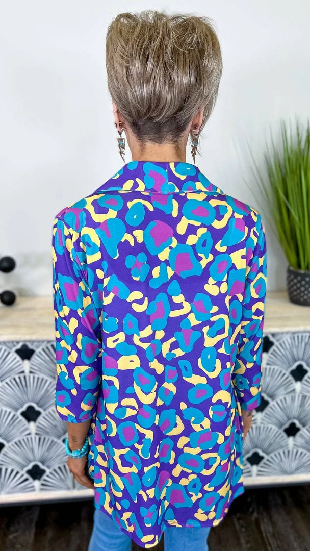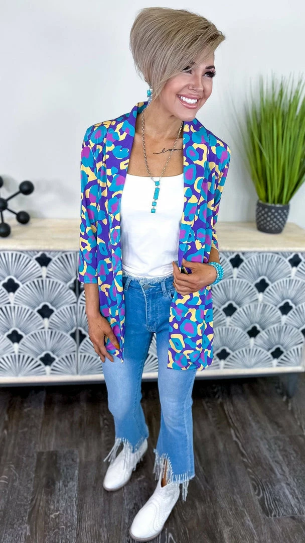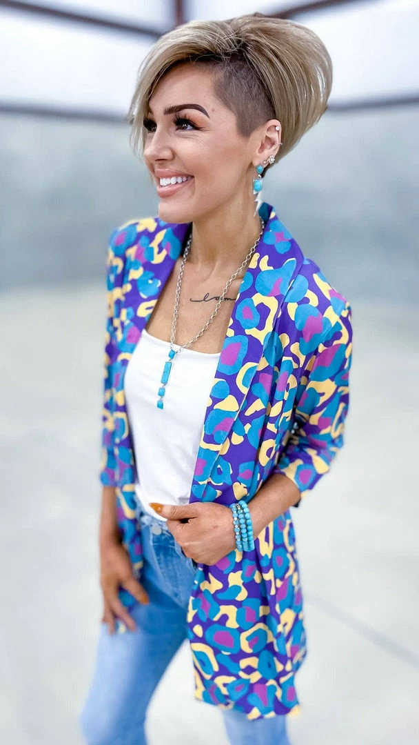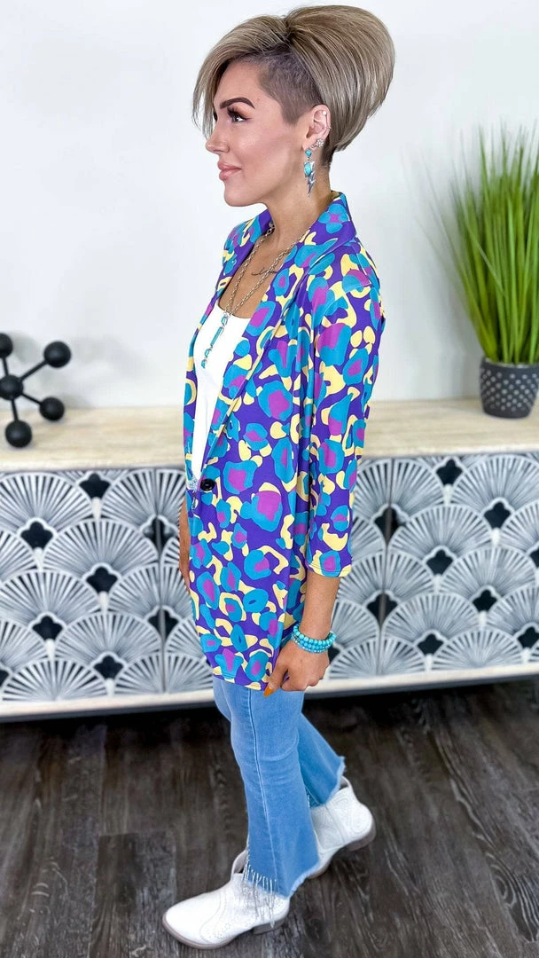 The ZigZag Stripe’s Highlight The Spark Blazer is the perfect topper for any outfit. This colorful leopard print blazer is sure to turn heads and make a statement. With a fitted silhouette, this blazer is perfect for a night out on the town or a day at the office. Add a pop of color and style to any outfit with this Highlight The Spark Blazer.