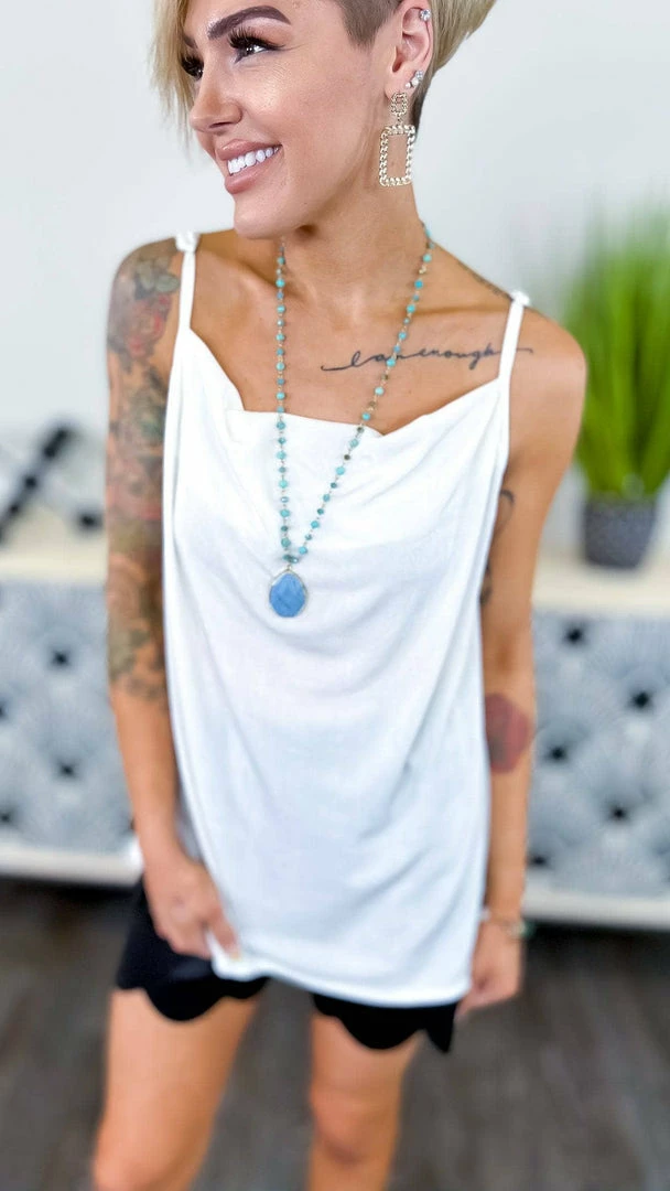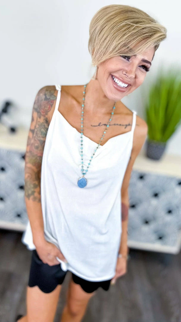 The ZigZag Stripe’sΒ Ivory Glam Gal Tank is the perfect way to show some shoulder and stay cool all summer long. This spaghetti strap tank top inΒ ivory is perfect for layering or wearing on its own. Whether you’re headed to the beach or the park, this tank top is a great choice for a day in the sun.