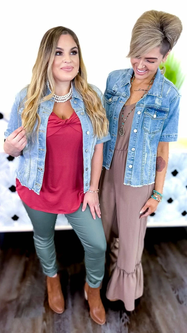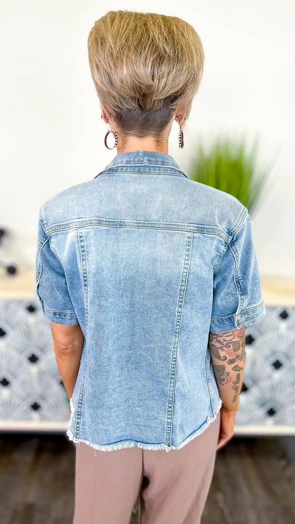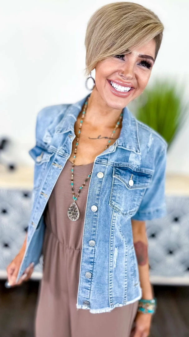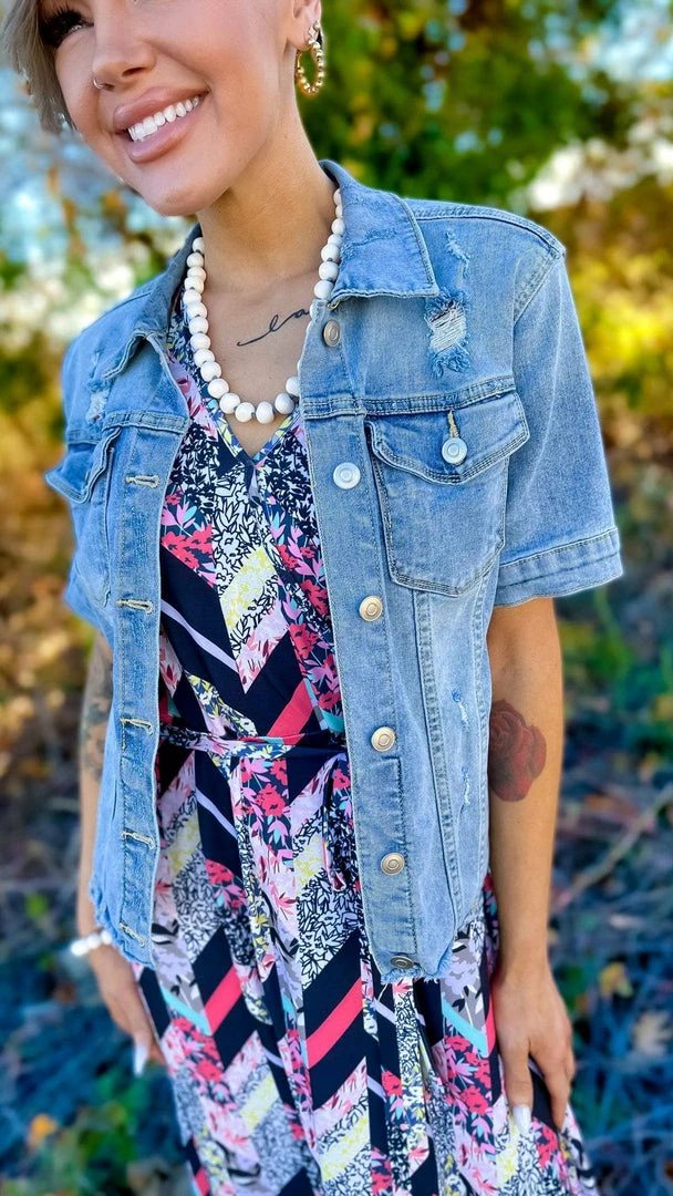 OH. MY. GOSH! Yes, we did it, we have brought you a short sleeve denim jacket! The outfits are unlimited with this one! Style it under a solid top, graphic tee, or dress. This jacket willΒ an all-year-round FAVORITE! Snag one before they’re gone!Β