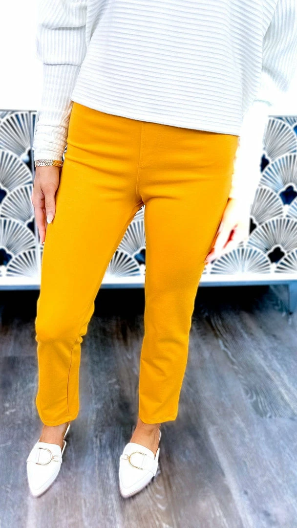 Meet your new favorite work pants. The ZigZag Stripe’s Yellow Basic Ponte Pants are just the right mix of comfort and style. Made from a soft, stretchy ponte material, these pants will keep you comfortable all day long. The straight-leg style is perfect for a professional look, and theΒ mustard color will brighten up any outfit. Pair with a blazer and heels for a polished look, or dress them down with a tee and flats for a more casual feel. No matter how you wear them, you’ll look and feel your best.Β