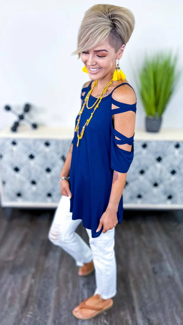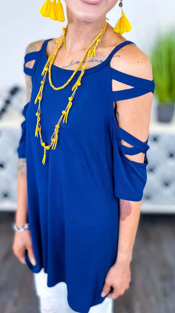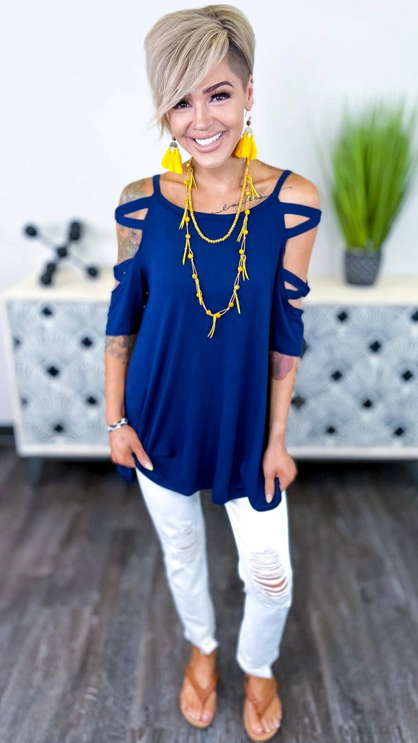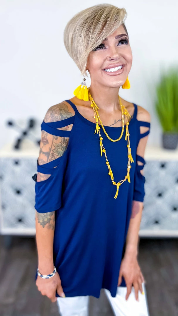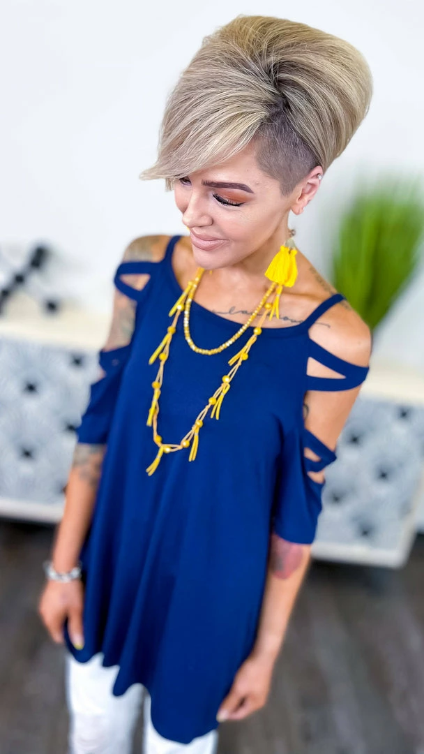 If subtle isn’t really your style, embrace this trendy caged-shoulder top! These are part of our ZZS exclusive collection, made by US for YOU! Check out all the colors!Β