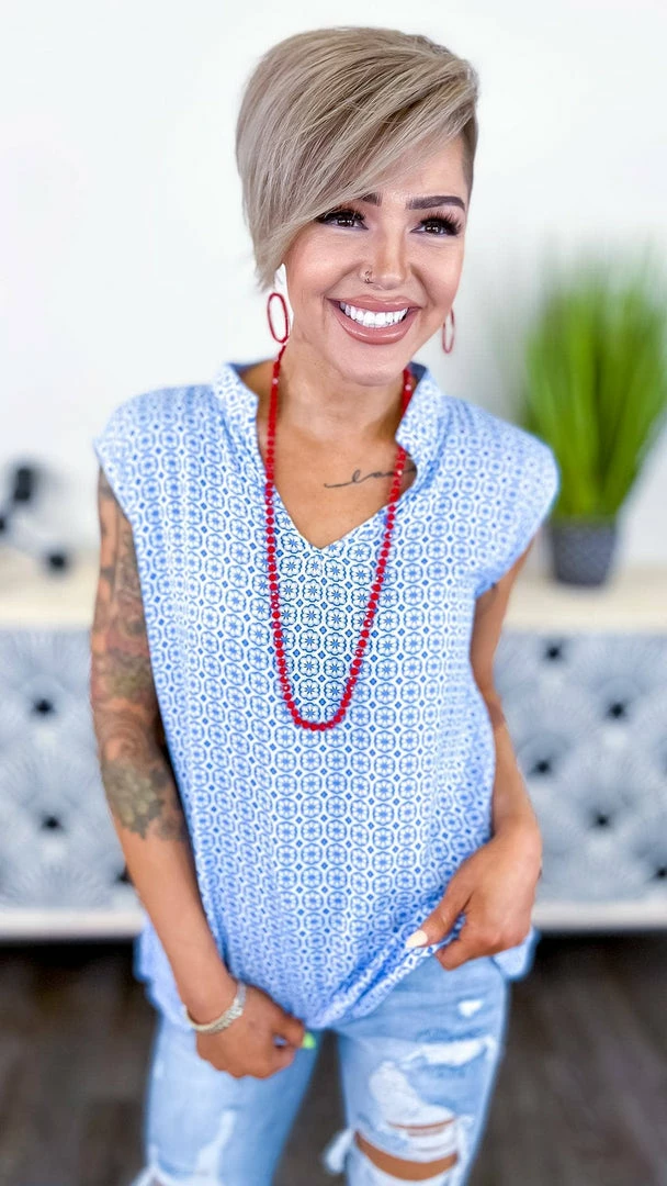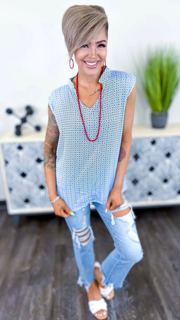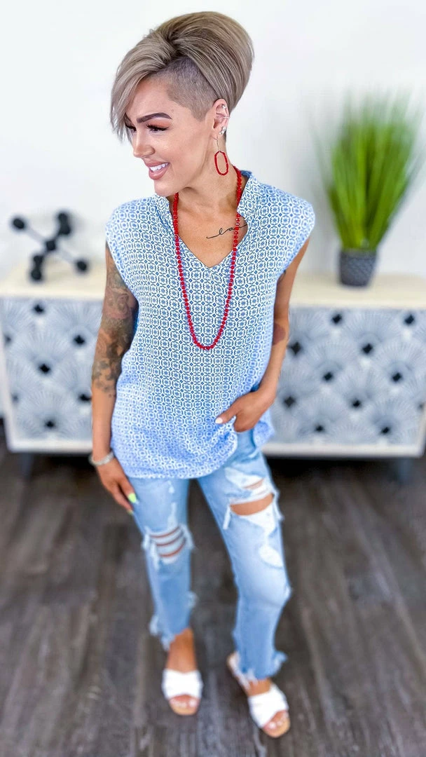 This new ZigZag Stripe top is little bit sassy, a whole lotta’ class. The Never Scripted Top has got you covered for your next meeting, GNO, or dinner date. With a floral geometric print, this sleeveless v-neck top is made for style. You’ll be looking sharp and feeling confident wherever you go.