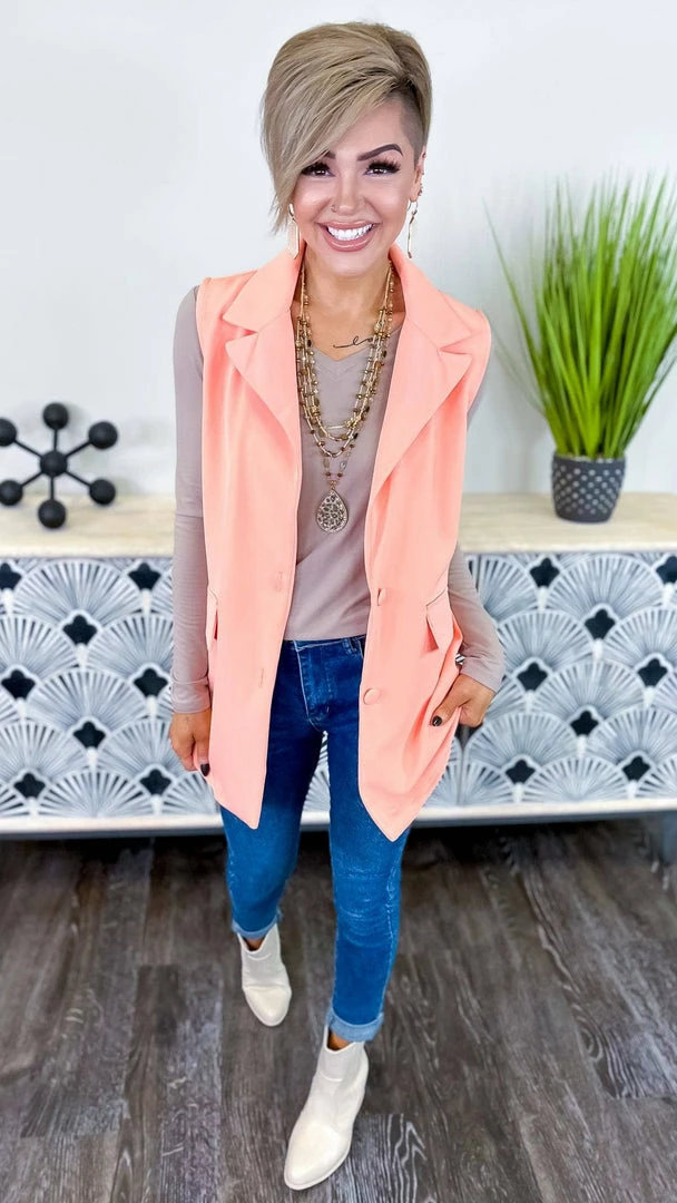 Looking to make a statement? The ZigZag Stripe’s Nude Martini Nights Blazer is perfect for any formal or professional occasion. This sleeveless blazer is a versatile must-have for your wardrobe. With a button front closure, this blazer is perfect for layering over any outfit. Whether you’re dressing up for work or a night out, this Outerwear piece is sure to turn heads.