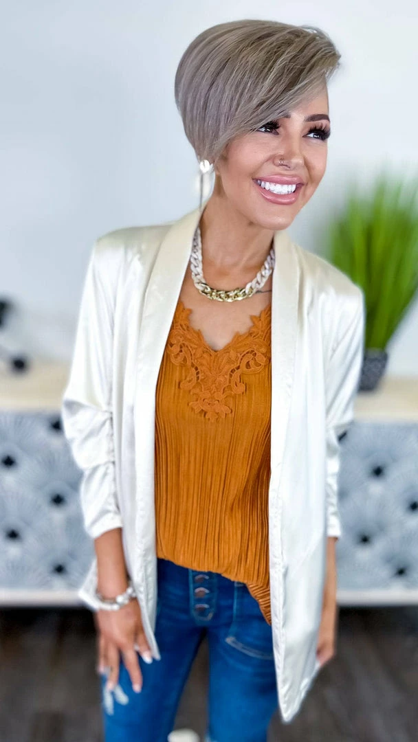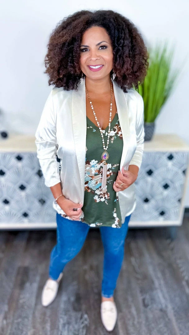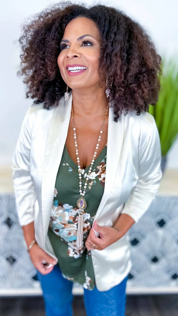 The ZigZag Stripe’sΒ Nude Charmed Lifestyle Blazer is perfect for work, date night, or any time you need a little extra confidence. Made with luxurious satin, this blazer will make you feel put-together and sophisticated. The 3/4 sleeves are perfect for showing off your favorite bracelets or watch. You’ll love how you feel in this blazer.