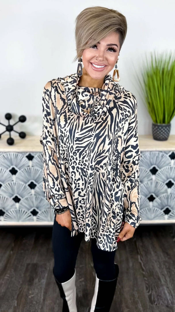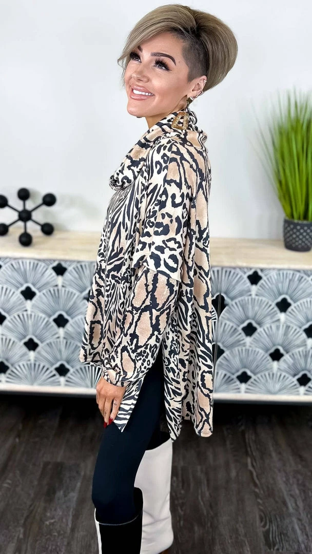 The ZigZag Stripe’s Point The Way Sweater is sure to keep you cozy all season. This soft and snuggly sweater has all the charm you need to make a persuasive case. With a classic turtle neck and soft animal knit fabric, it’s perfect for keeping you cozy, yet fashionably on-trend. With a versatile hi-low silhouette and trendy side slits, this sweater is sure to become a wardrobe favorite.