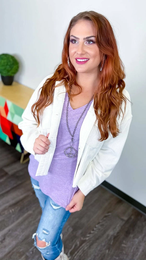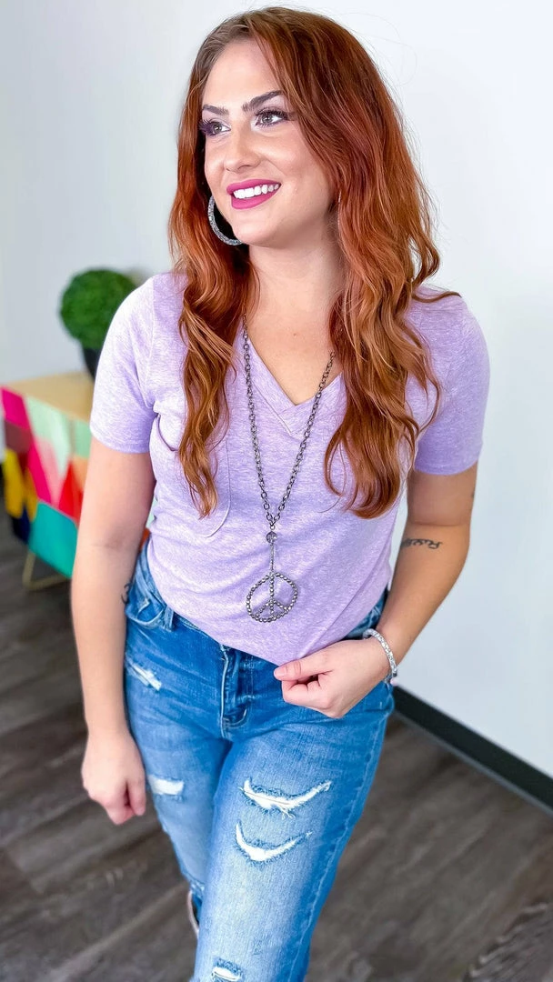 The ZigZag Stripe’s Daily Visit Top is perfect for your on-the-go lifestyle. The solidΒ purpleΒ color is versatile and easy to style, while the pocket is functional and stylish. The short sleeve top is comfortable and perfect for everyday wear.