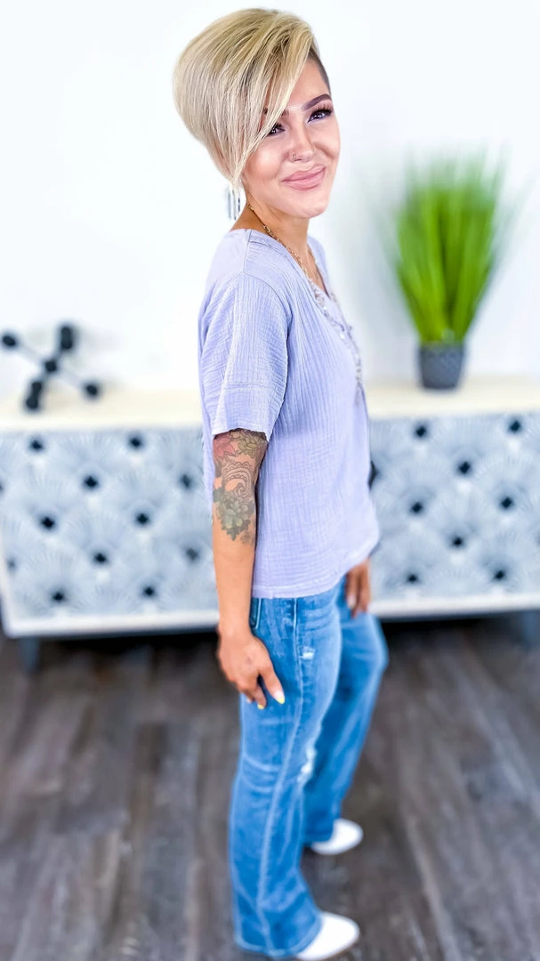 The ZigZag Stripe’s Take A Minute Top is perfect for your everyday needs. This top is comfortable, fashionable, and easy to style. The light lavenderΒ color is perfect for any outfit, and the solid pattern makes it easy to match with any bottoms. Whether you’re running errands or going to a casual lunch, this top is a great choice.