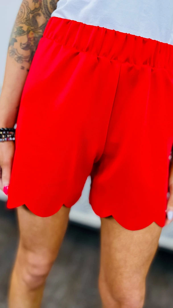 Meet your new favorite pair of shorts. The ZigZag Stripe’sΒ RedΒ Pretty City Shorts are solid, scallop shorts that will quickly become a staple in your wardrobe. With a scallop hemline, these shorts are flirty and fun. They’re perfect for a day at the park or a night out on the town. You’ll love the way you look and feel in these shorts.