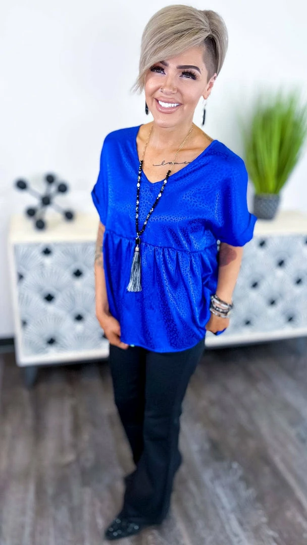 The ZigZag Stripe’s Royal Leopard City Sleek Top is a babydoll top with a difference. made with luxurious satin leopard print fabric, this top is sure to turn heads when you walk into the room. The short sleeves and babydoll cut make it the perfect top for a night out on the town. You’ll be looking and feeling like a glamorous queen in no time.