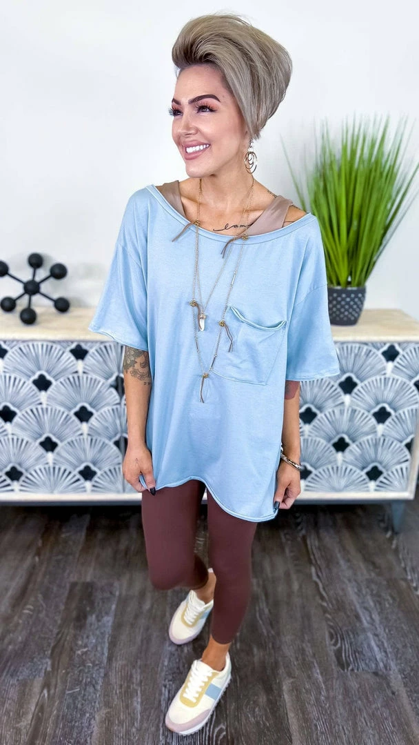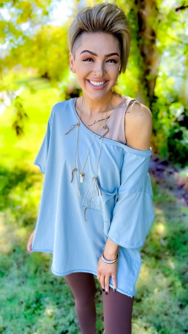 You’ll be longing to lounge in this ZZS top all day. The soft,Β blue fabric and relaxed fit will make you never want to take this top off. With a front chest pocket, this top is perfect for a day of relaxation. Whether you’re staying in or hitting the town, this top is a must-have in your wardrobe.