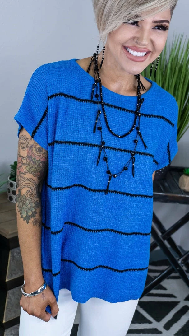 This stripe top has all the rightΒ feelΒ and this styleΒ is right on trend! We love the versatility in this ZZS Original!