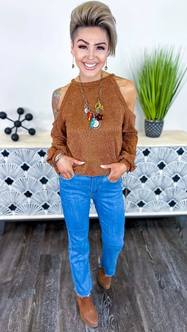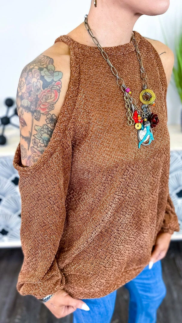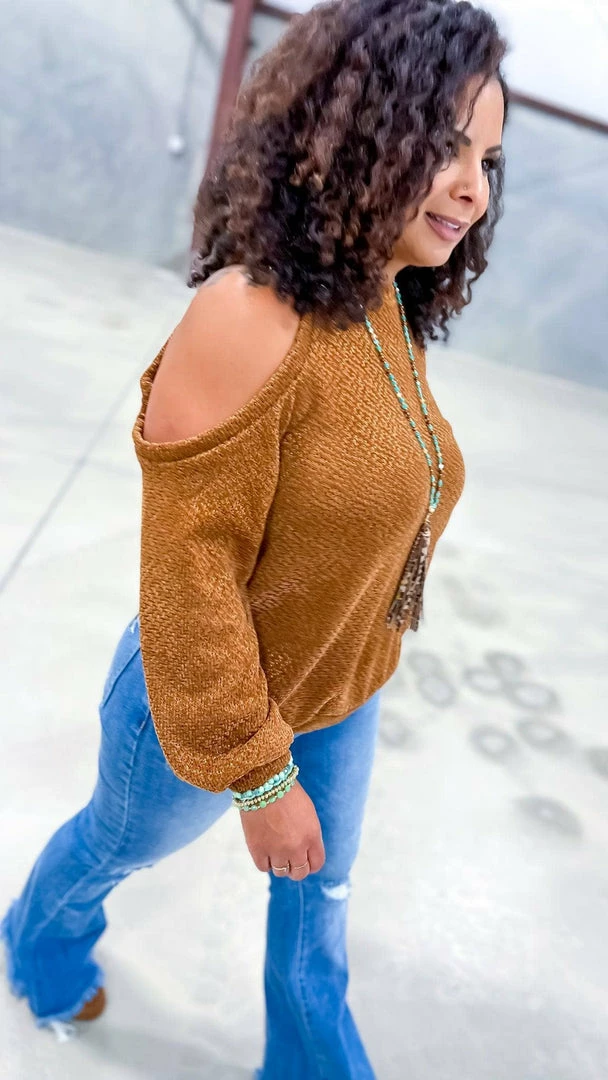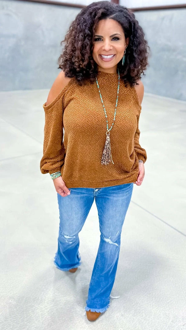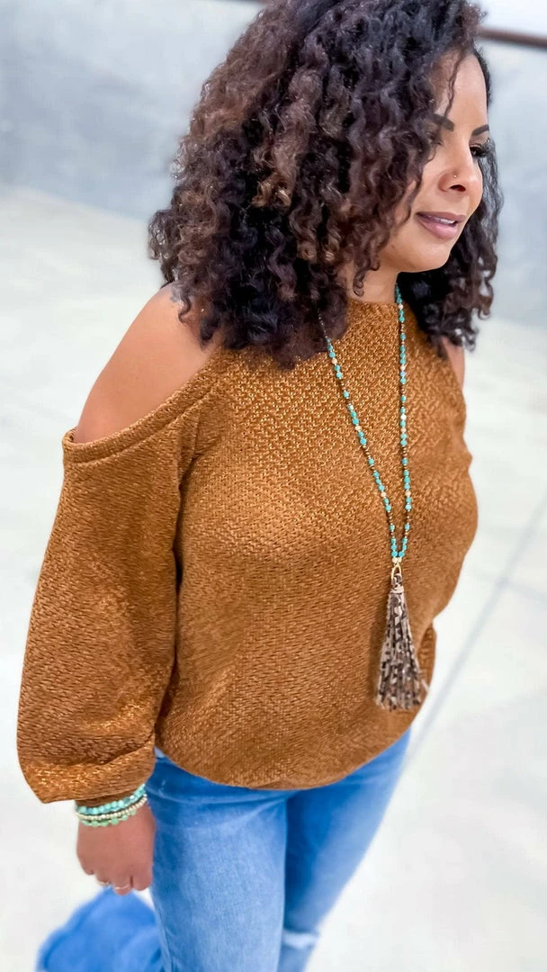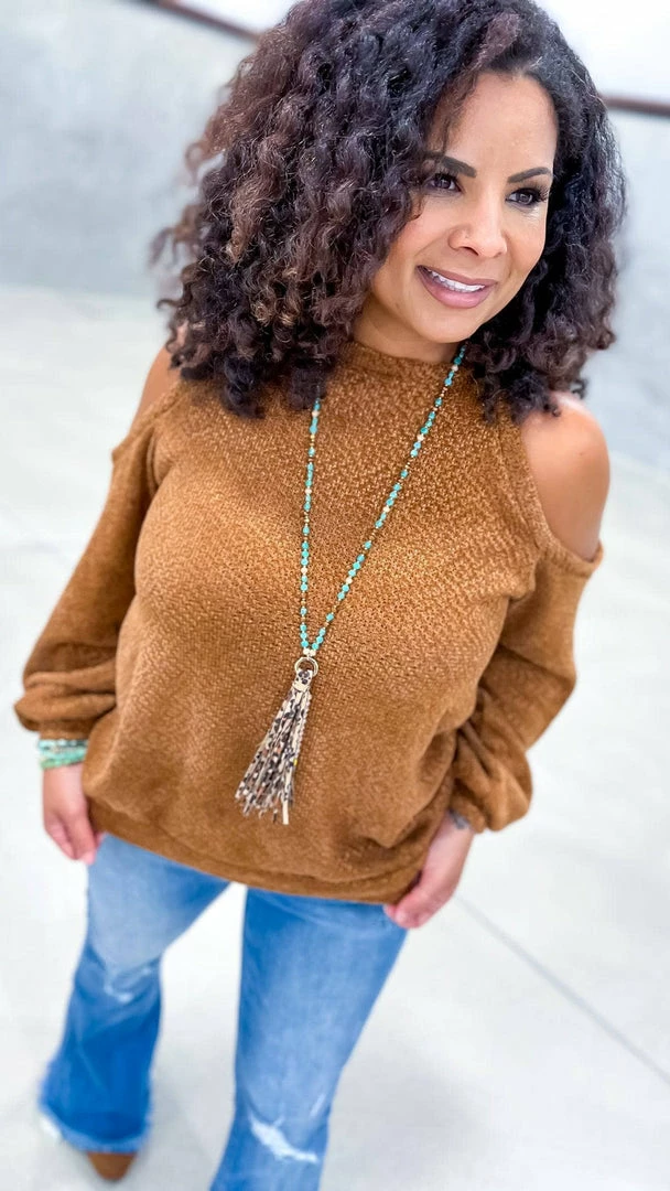 The ZigZag Stripe’sΒ Camel Weekend Go To Sweater is the perfect way to add a pop of color to your wardrobe. This cold shoulder sweater is ideal for a casual day out or a night on the town. The sweater top is made of a soft material that will keep you comfortable all day long.