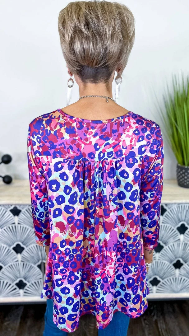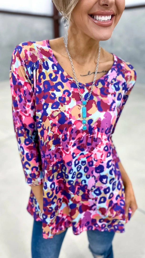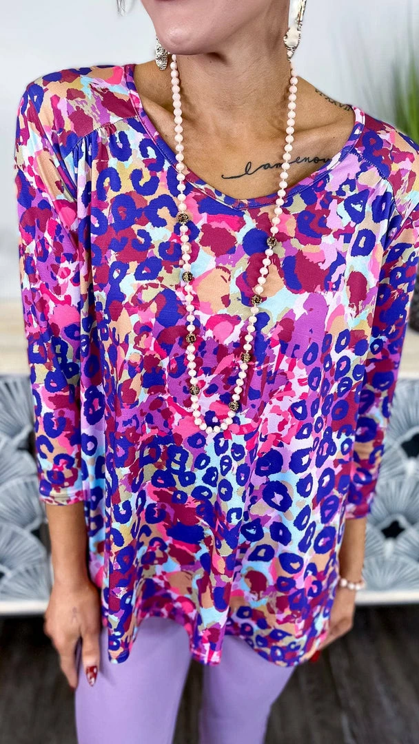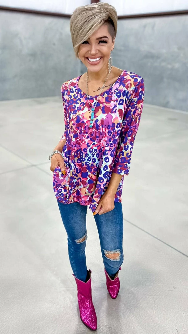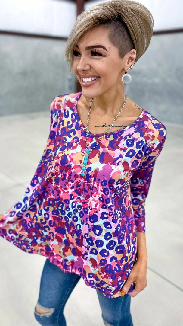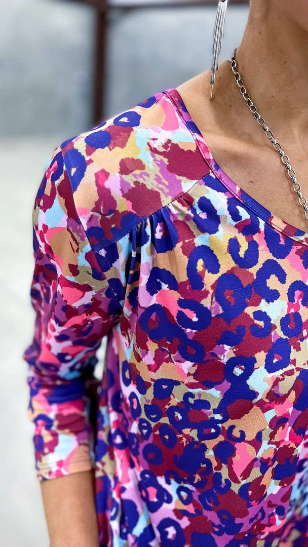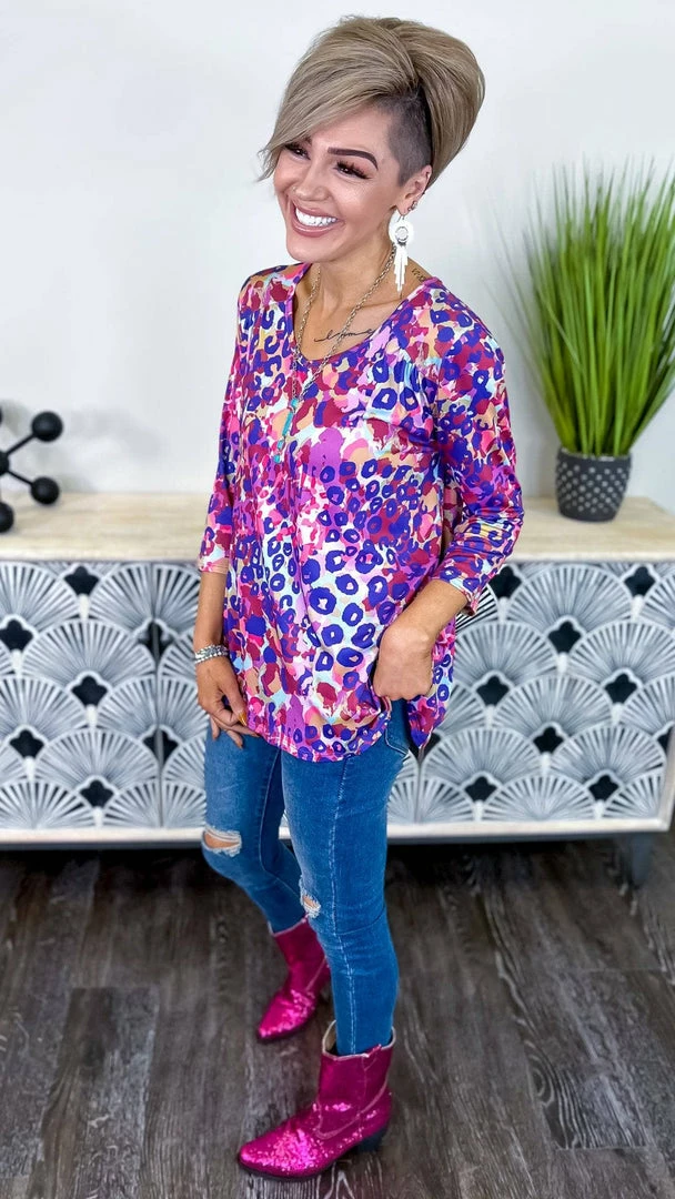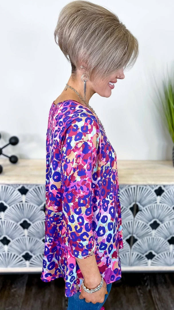 The ZigZag Stripe’s Going Your Own Way Top is perfect for any fashion-savvy woman on the go. With a colorful animal print and v-neckline, this short sleeve top is both stylish and practical. The 3/4 sleeves make it perfect for layering and the exclusive print ensures that you’ll stand out from the crowd.