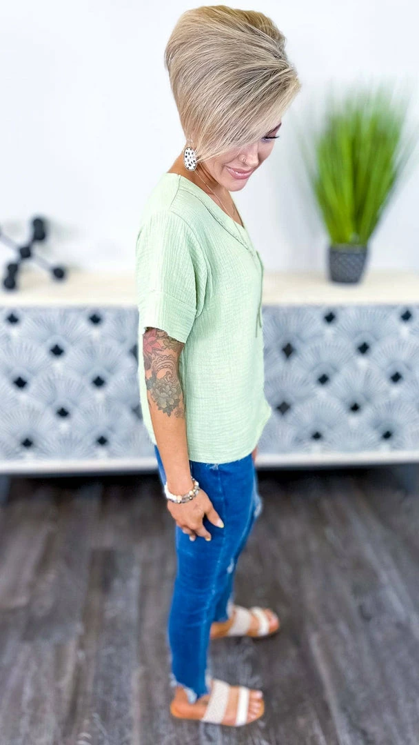 The ZigZag Stripe’s Take A Minute Top is perfect for your everyday needs. This top is comfortable, fashionable, and easy to style. TheΒ green color is perfect for any outfit, and the solid pattern makes it easy to match with any bottoms. Whether you’re running errands or going to a casual lunch, this top is a great choice.