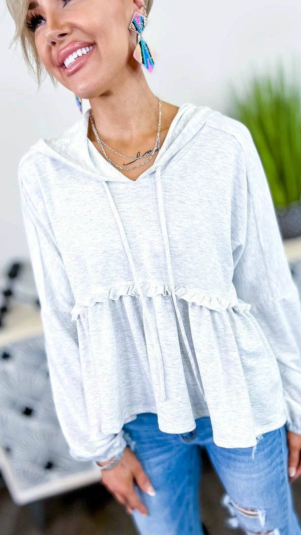 Dress up your everyday essentials with this stylish and comfortable hoodie that was made by US for YOU! Cozy up in this chic and stylish hoodie. The hi-low silhouette and babydoll hooded top add a touch of femininity to this everyday essential. Dress it up or down, this hoodie is a must-have in your wardrobe.