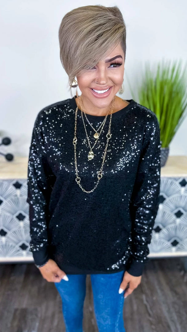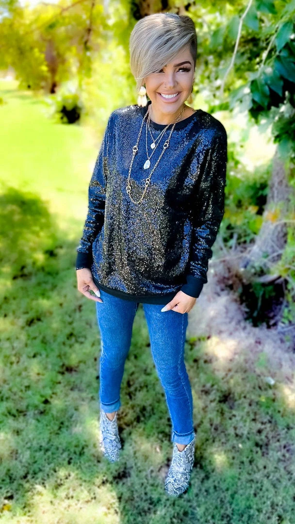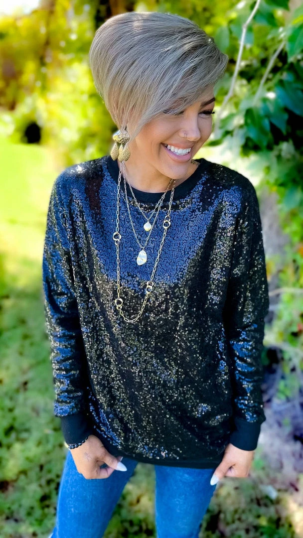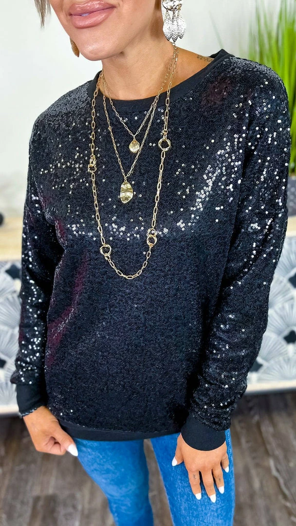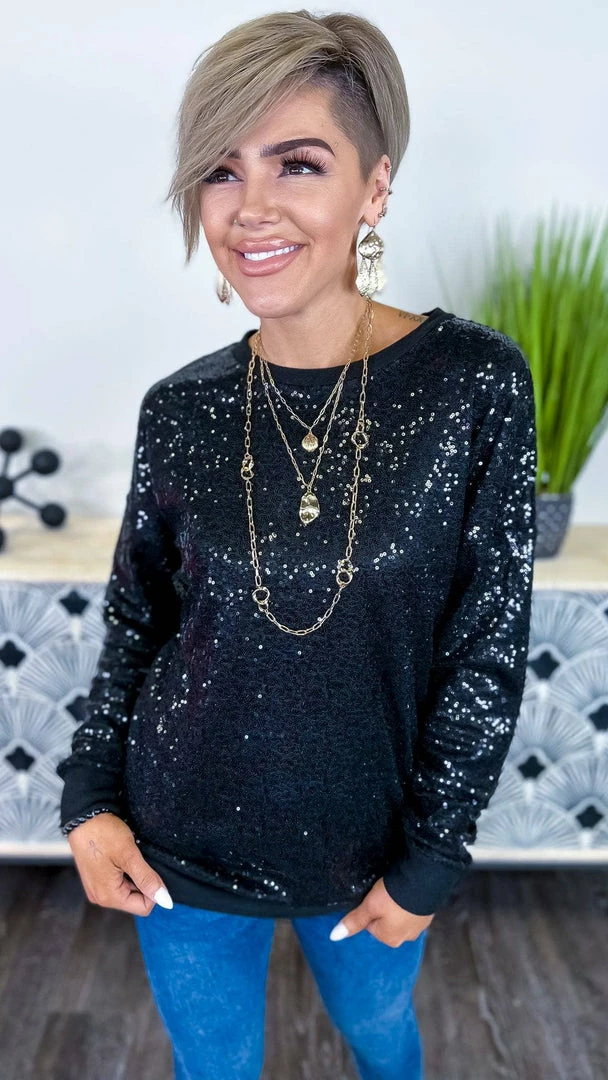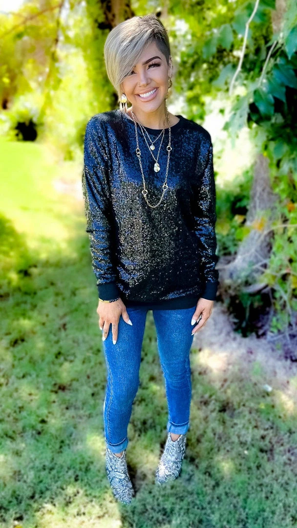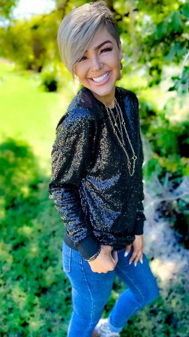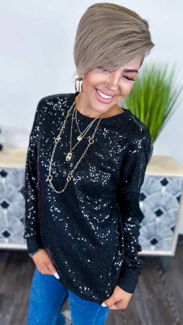 Shine bright like a diamond in this ZZS sequin top. With its sass and sequin, this top is sure to make a statement. The long sleeve style is perfect for a night out on the town. Dress up any outfit with this show-stopping top.