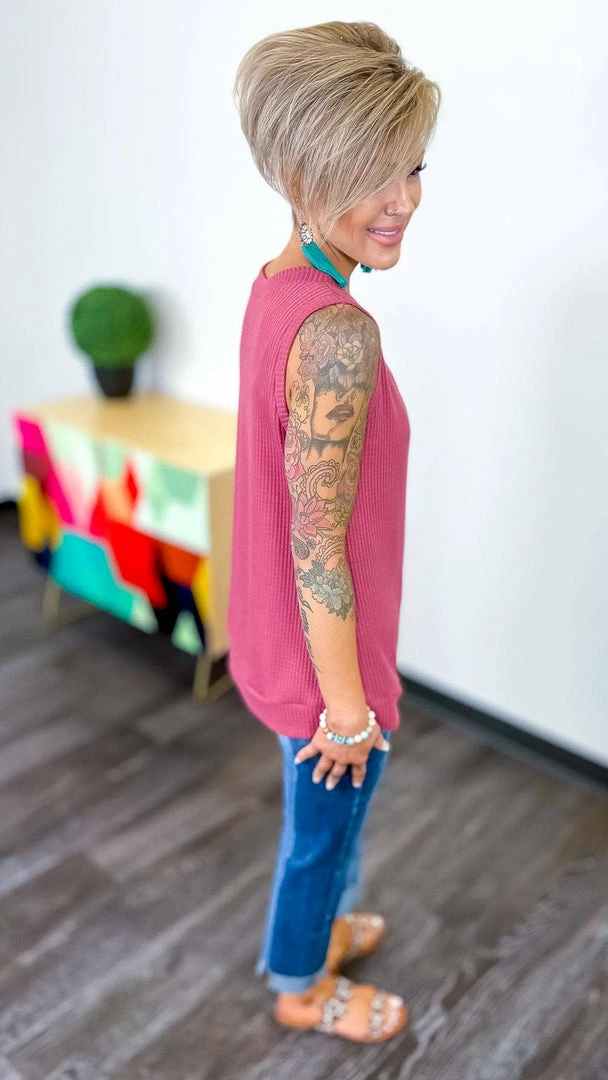 This something extra reversible tank is ideal for layering or wearing on its own. The waffle knit is soft and comfortable, making it perfect for everyday wear. The ZigZag Stripe offers a unique look that will set you apart from the rest. The reversible design allows you to wear it two ways, so you can mix and match it to create a variety of looks.
