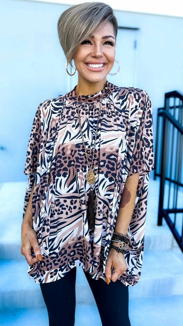 Tease them with a glimpse of your wild side in this Ready To Flaunt Top. This animal mixed printΒ top with short sleeves, gives you just the right amount of coverage while still showing off your flirtatious side. Whether you’re going out on the town or just hanging out with your girls, this top is a must-have in your wardrobe.