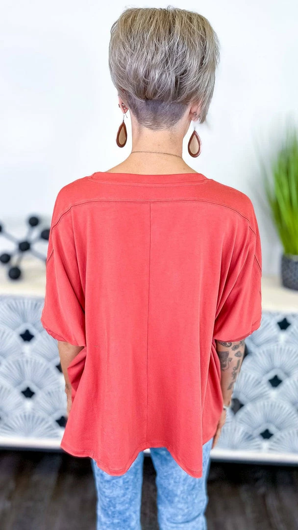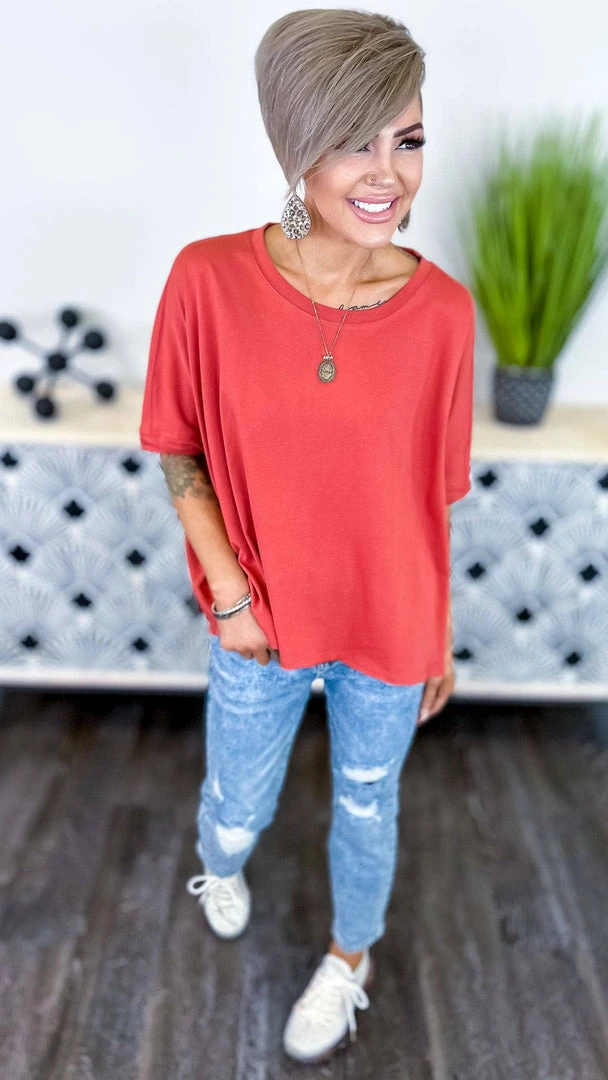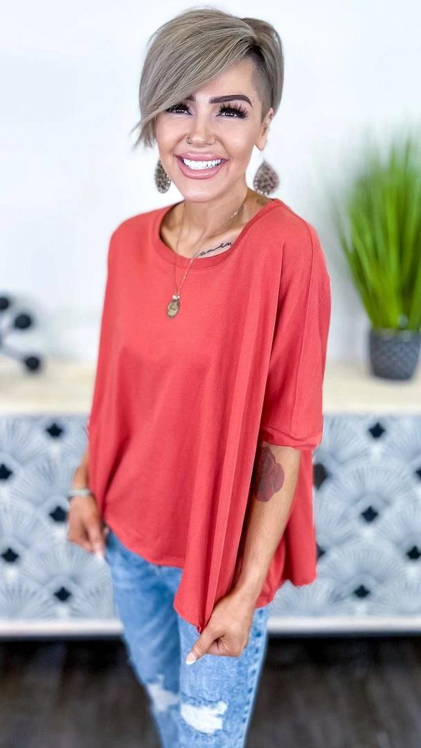 The ZigZag Stripe’sΒ Red Home For Now Top is a must-have for your wardrobe. This top features a solid design with short sleeves. You can wear this top with a variety of bottoms to create a variety of looks. The ZigZag Stripe’sΒ Red Home For Now Top is a versatile piece that you’ll want to wear again and again.Β (This is a red/orange shade)