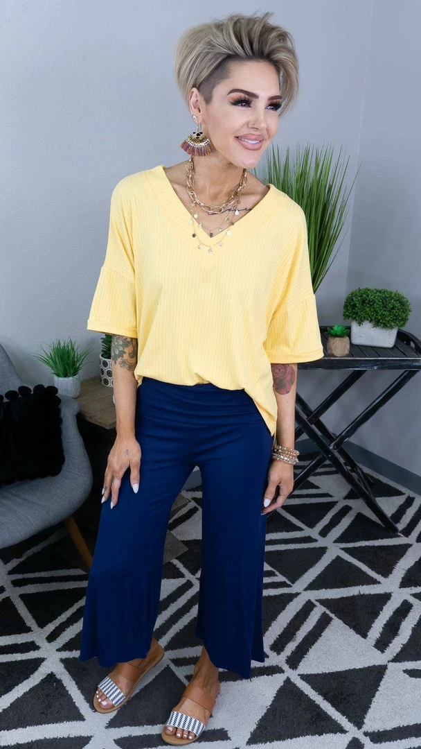 There are no rules to styleΒ withΒ this top featuring a ribbed knit material, v-neck, and cropped silhouette. This cute top is made by US for YOU!