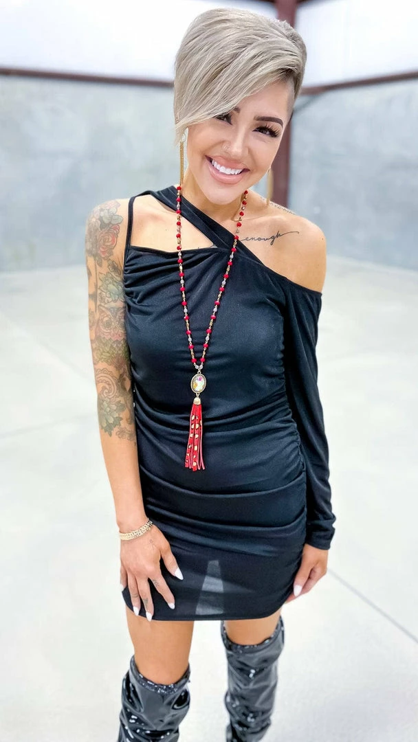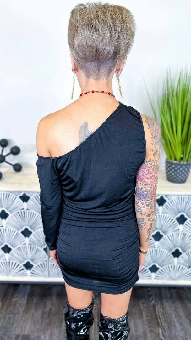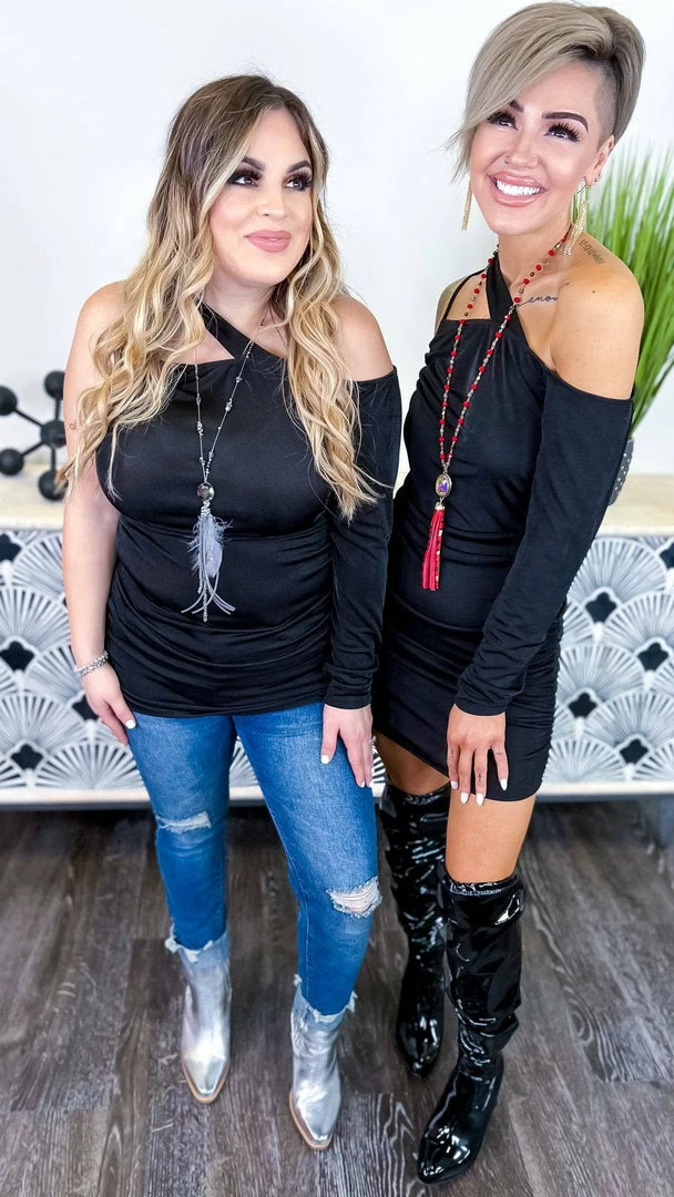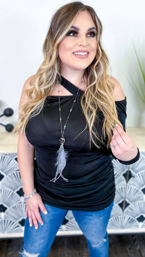 Do you believe in love at first sight? Well, we certainly doβ especially when it comes to this new ZZS exclusive! With its black hue, ruching on the sides, and one-shoulder silhouette, this top is undeniably sexy. We love how the ruching allows you to wear this as a top or you can pull it over your hips as a tunic dress. And the one spaghetti strap is the perfect finishing touch. Trust us, you’ll fall head over heels for this top.