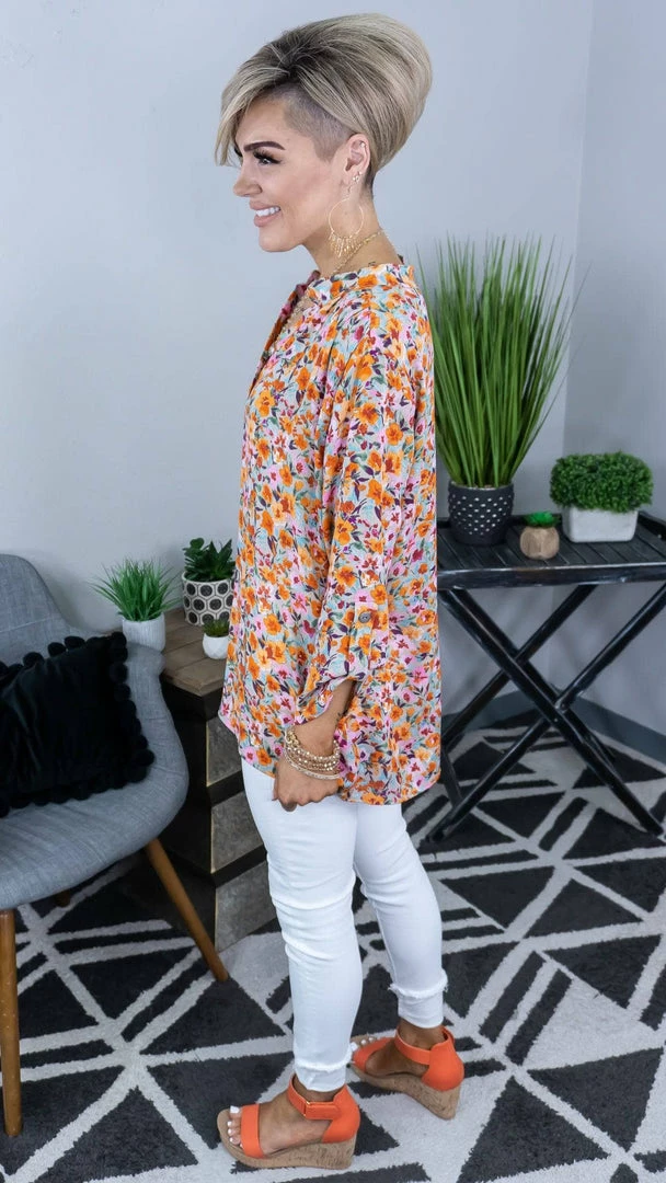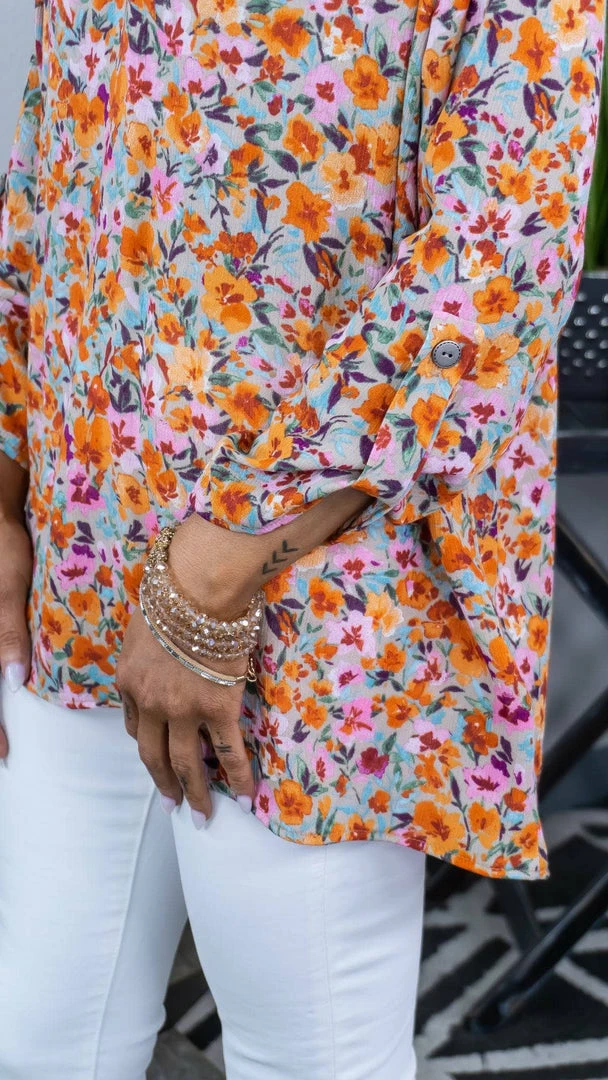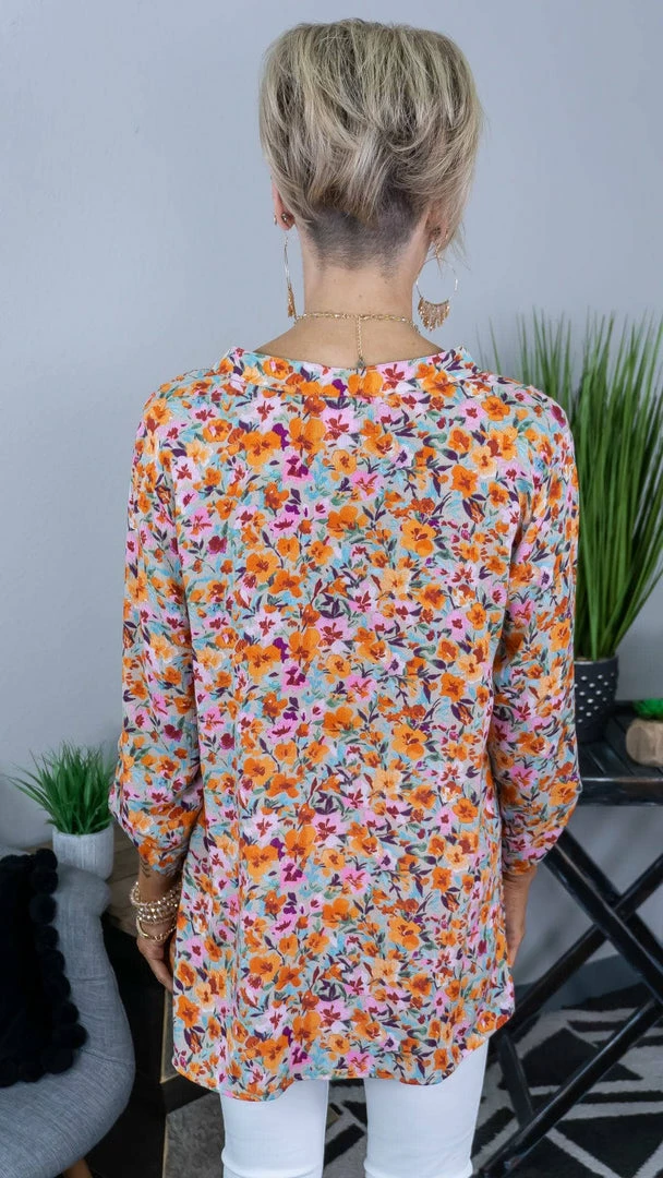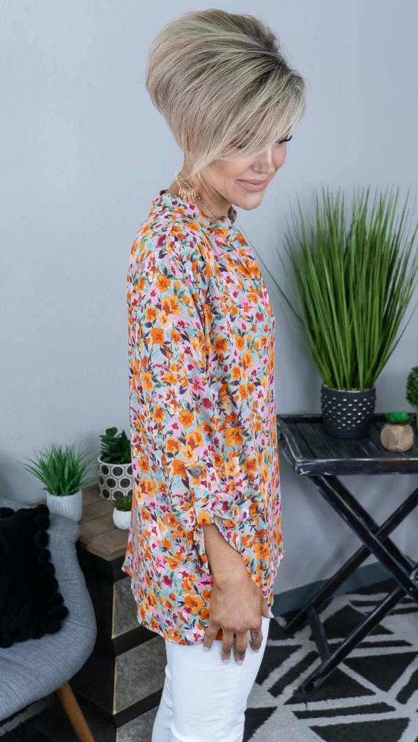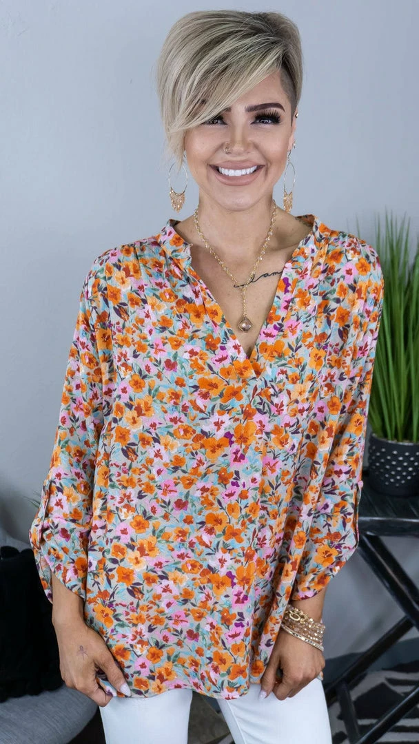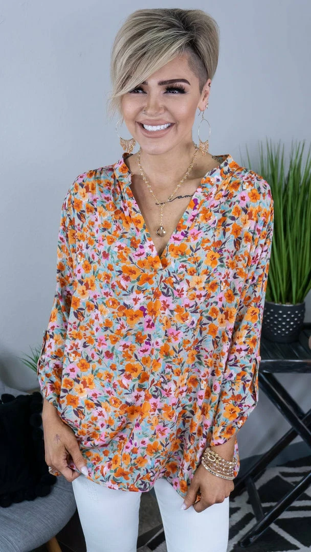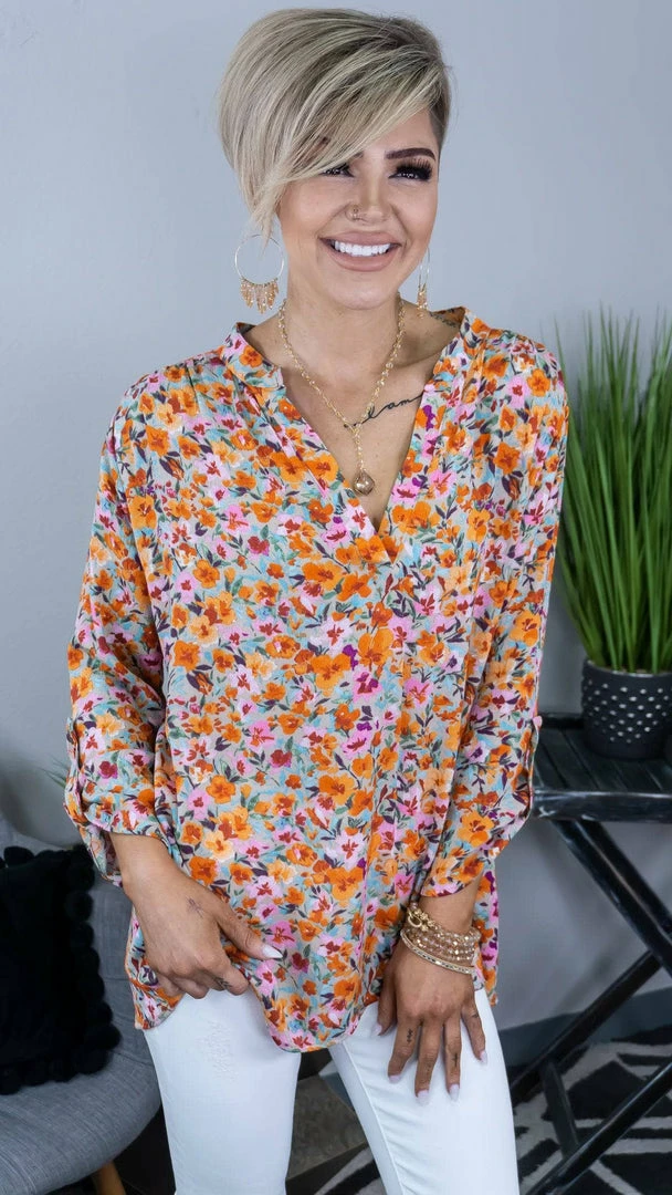 Hey girl, HEY! We added this fun, new style to our made for YOU by US collection! ThisΒ floral top featuresΒ 3/4 tab sleeves and aΒ flowy fit. Grab it before it sells out!