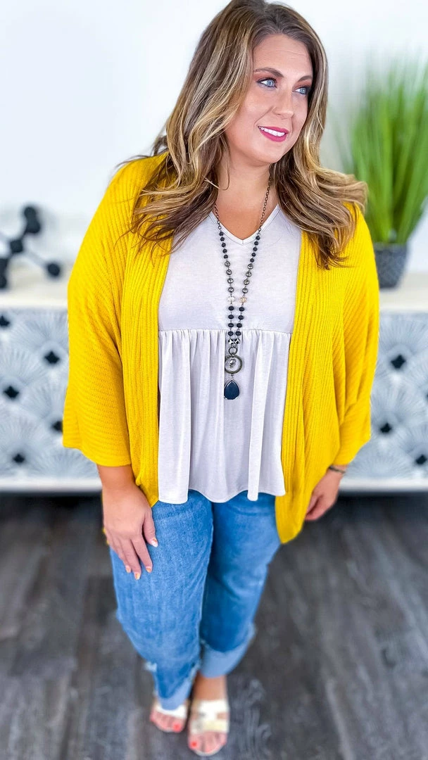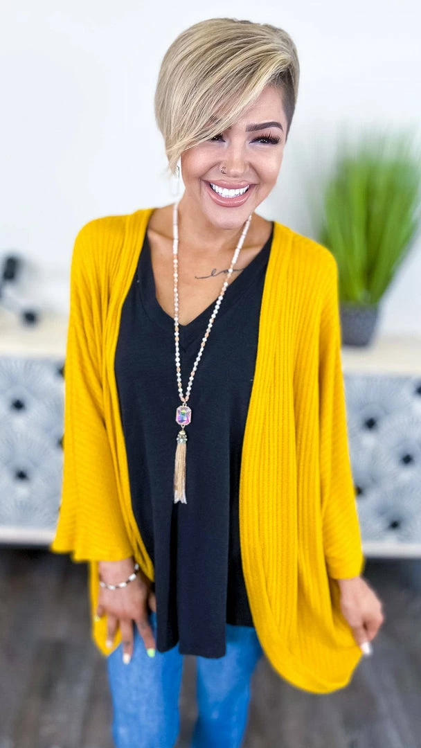This 3/4 sleeve cardigan is the perfect piece to transition from summer to fall. TheΒ yellow color is pretty and flattering, and the cardigan style is chic and stylish. The ZigZag Stripe Epiphany Cardigan is the perfect way to add a touch of stylish warmth to any outfit.