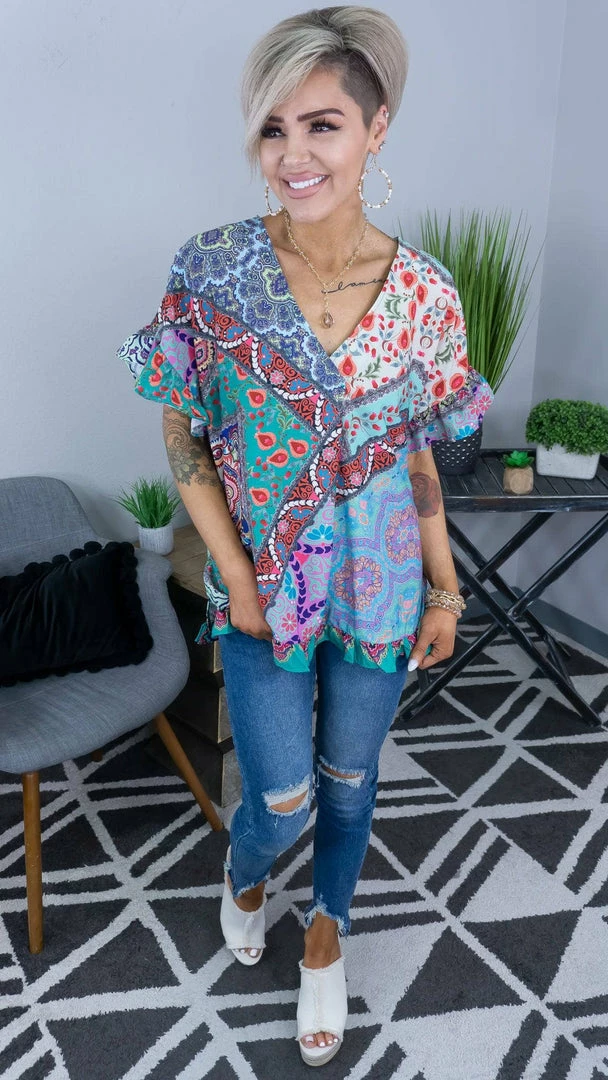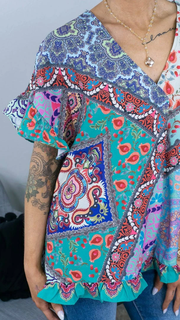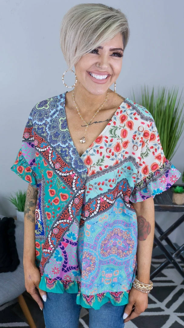 Hold their gaze as you wear this top to your next outing! This top features a mix of prints and colors that is sure to make a statement.Β