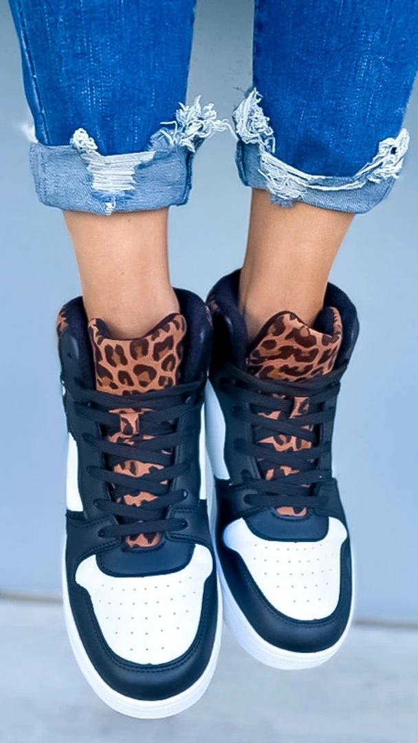 Add a touch of glamor to your everyday look with our BB High Top Sneakers. With the leopard print and glitter star accent, these fashionable sneakers are sure to turn heads. Not to mention, the comfortable fit makes them perfect for all-day wear. Whether you’re dressing up or dressing down, these sneakers are the perfect finishing touch to any outfit.