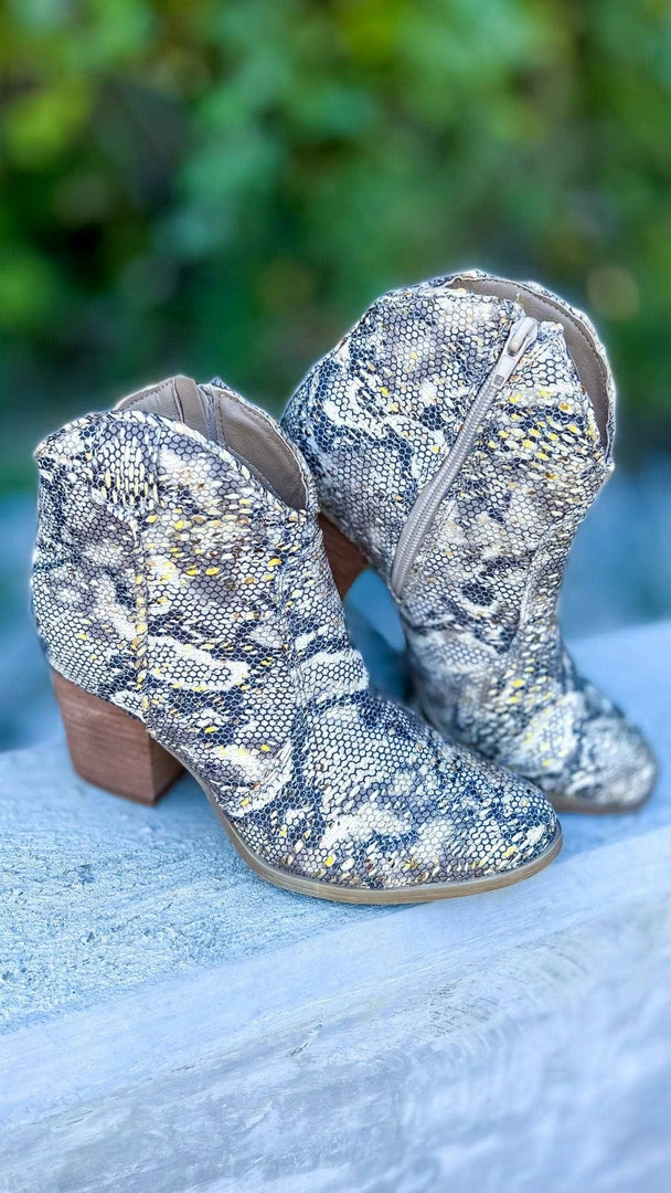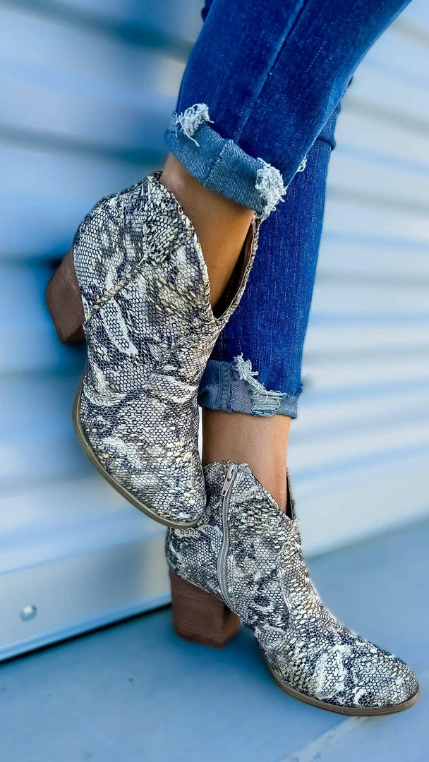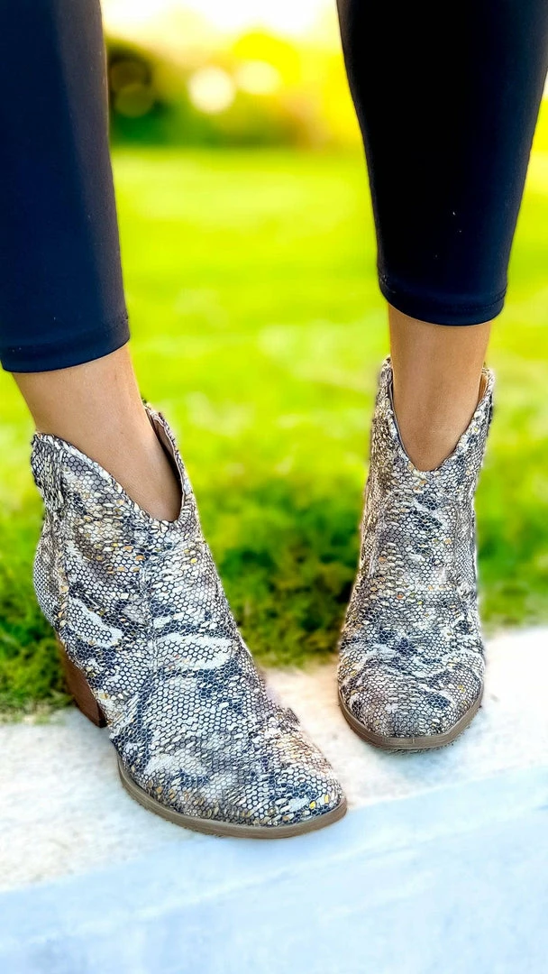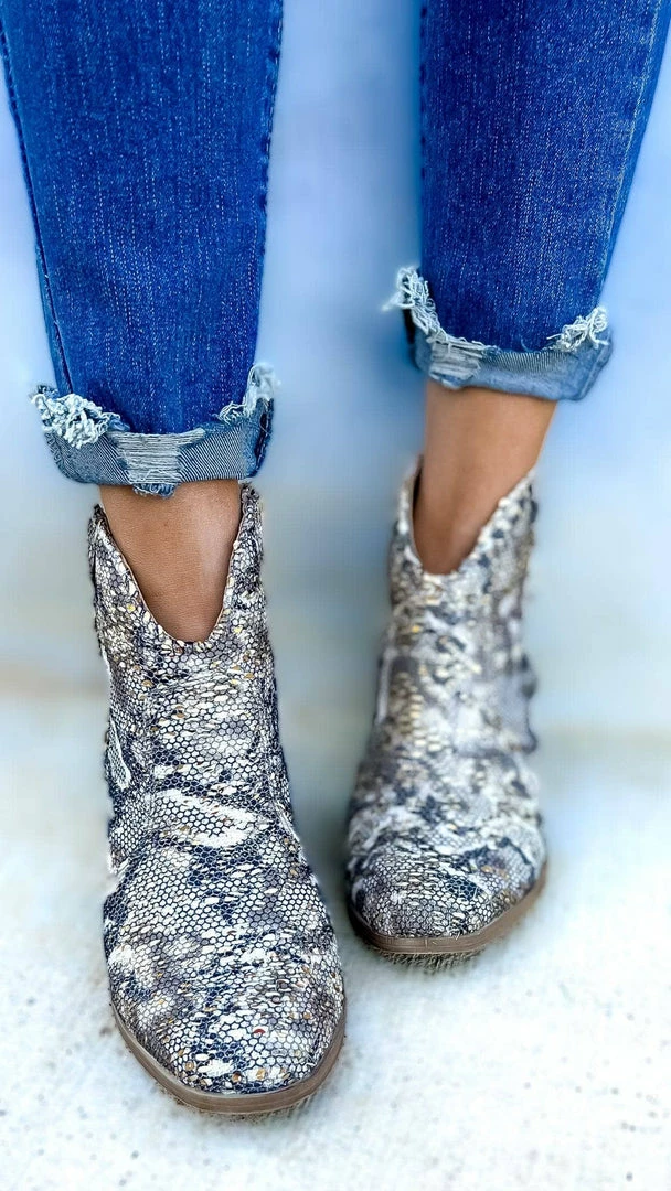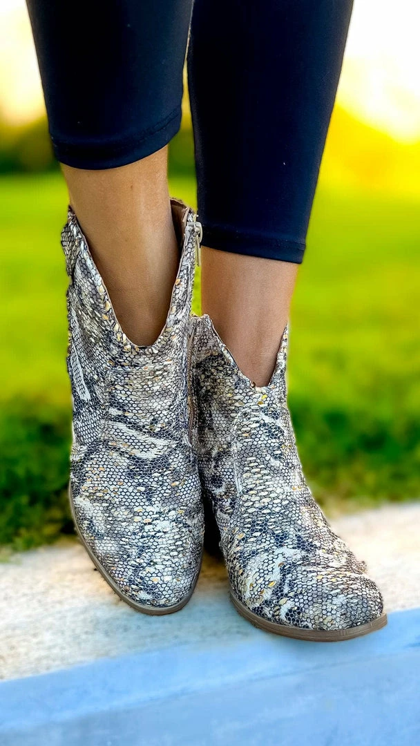 With these stylish Snake Sprinkle Booties, you can add a touch of wildness to any outfit. These shoes feature a snake print design that is sure to turn heads. Whether you’re dressing up for a night out or dressing down for a casual day, these booties are a great addition to your wardrobe.