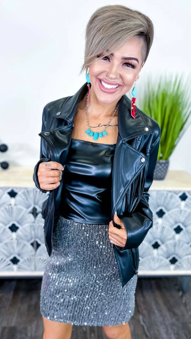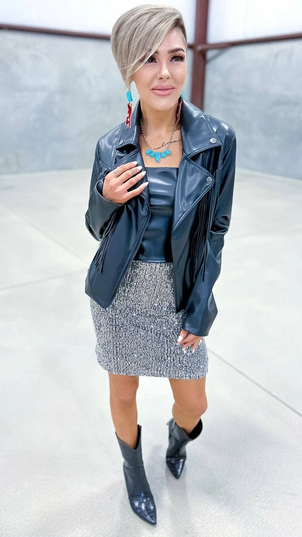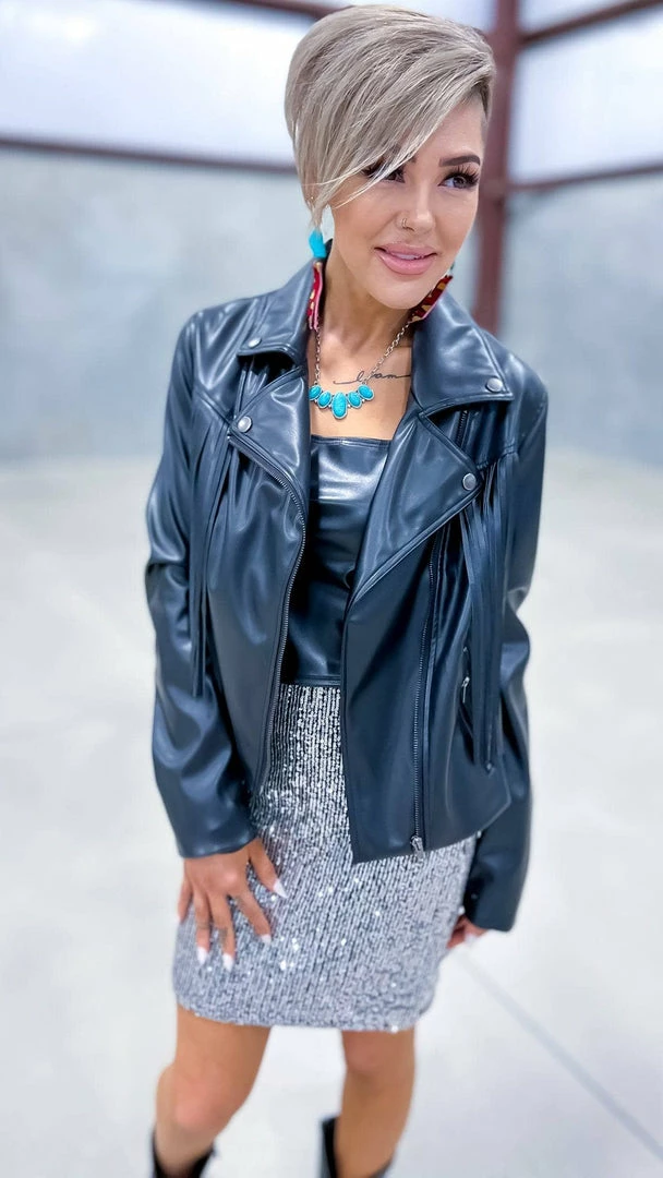The perfect jacket to take your style up a notch. Black is always in style and this biker jacket with fringe details adds a touch of boho charm. With a versatile style, this jacket can be dressed up or down. Stay warm and look stylish in this Black Fringe Benefits Jacket.