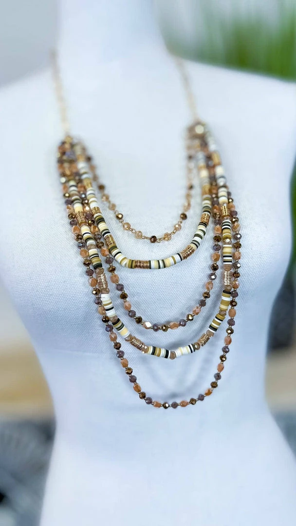 A classicΒ brown necklace that will never go out of style. With its unique brown, sand, andΒ cream design, this necklace is perfect for dressing up any outfit. And with its multi-layered design, it adds a touch of elegance to any look. Whether you’re going out for a night on the town or just running errands, this necklace is a must-have for your wardrobe.