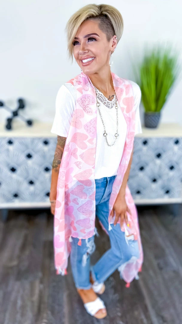 All the Sweets Vest for the sweetest of hearts. This heart-covered vest is perfect for showing the world how big your heart is. Made with love, this vest is sure to bring a smile to everyone who sees it.