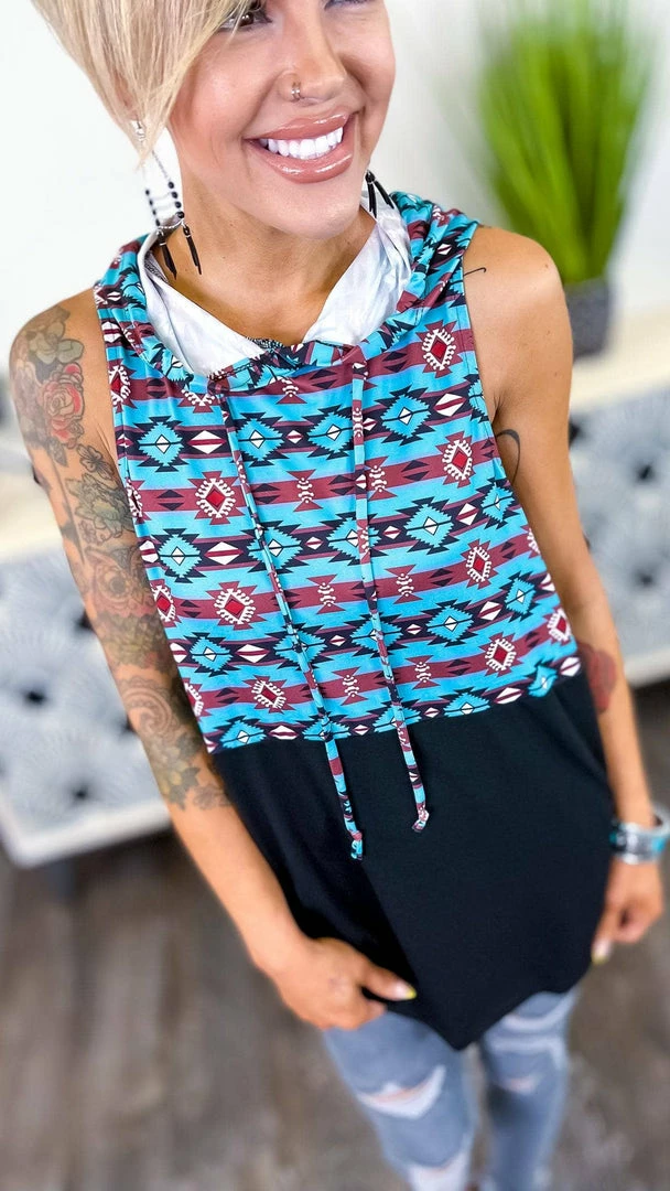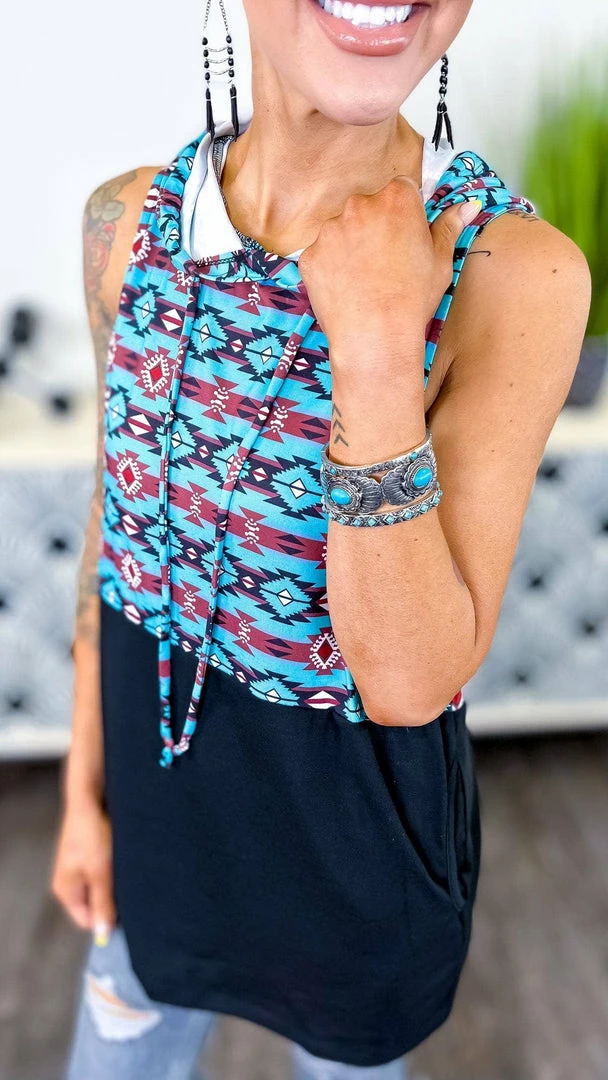 You’re going to love having this Aztec printed hooded tank in your mix-up! This tank will be fun to pair with denim shorts and sandals or leggings and sneakers!Β