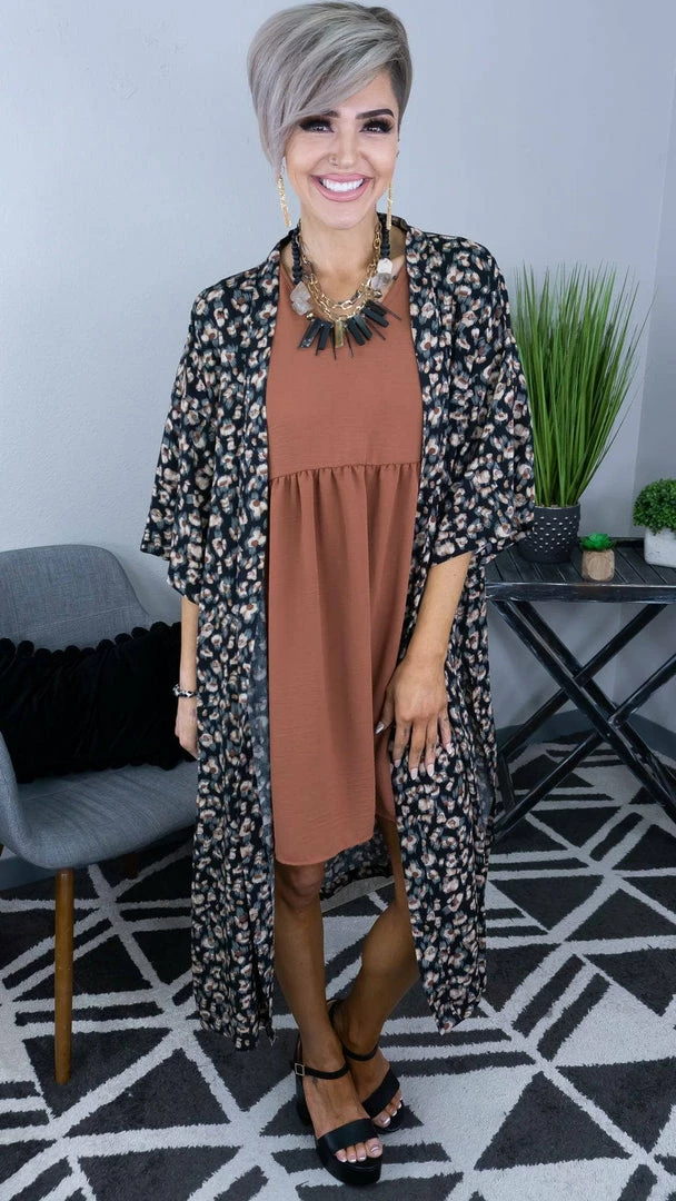 Send us the location and let’s get together, cutie! This cardigan features a unique twist on leopard print, short sleeves, a longer length, and so much flow!Β
