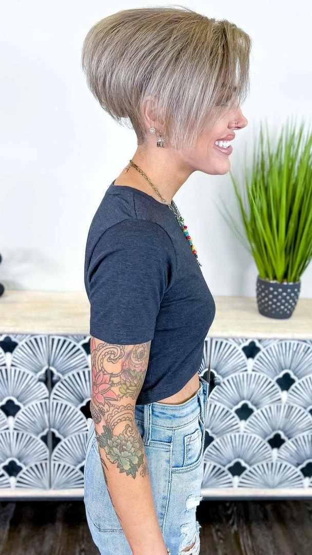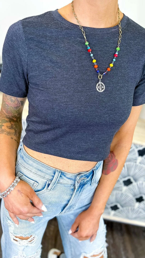 The perfect piece to top off your warm-weather look. A sleek and simple top, this solid piece is a go-to this year. With a cropped fit and short sleeves, it’s easy to wear as is, or layer a denim jacket or cardigan over it. Style this top with your favorite pair of jeans or shorts for a look that’s both easy and effortless.